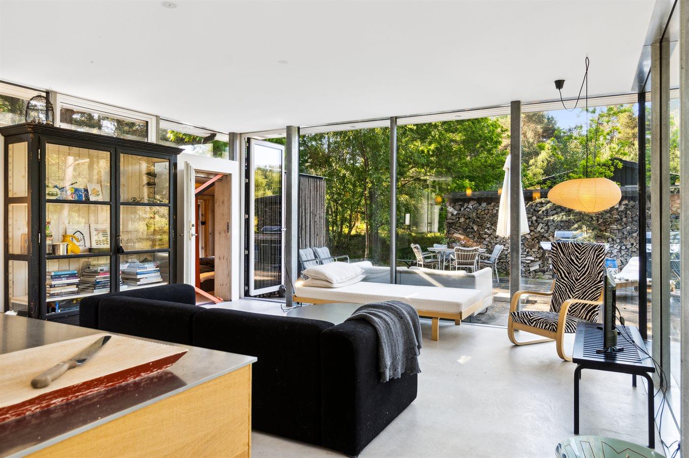 Dette er lidt af en arkitektonisk perle. Huset ligger omkranset af skov og med kun få hundrede meter til dejlig badestrand. Selve huset er indrettet meget smagfuldt med store vinduer fra gulv til loft, betongulv med gulvvarme og et meget stort køkken/alrum. Når man sidder ved spisebordet og nyder sin morgenkaffe, så kan man følge med i det rige dyreliv, hvor dyrene kommer helt tæt på huset.