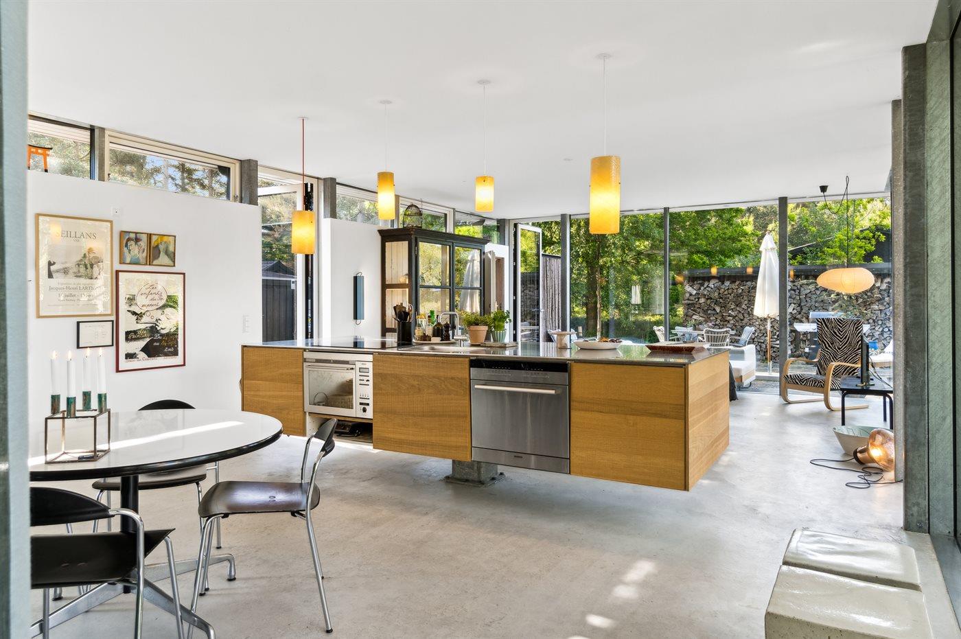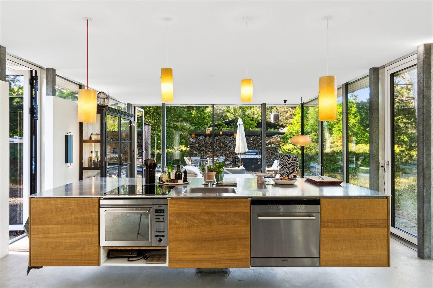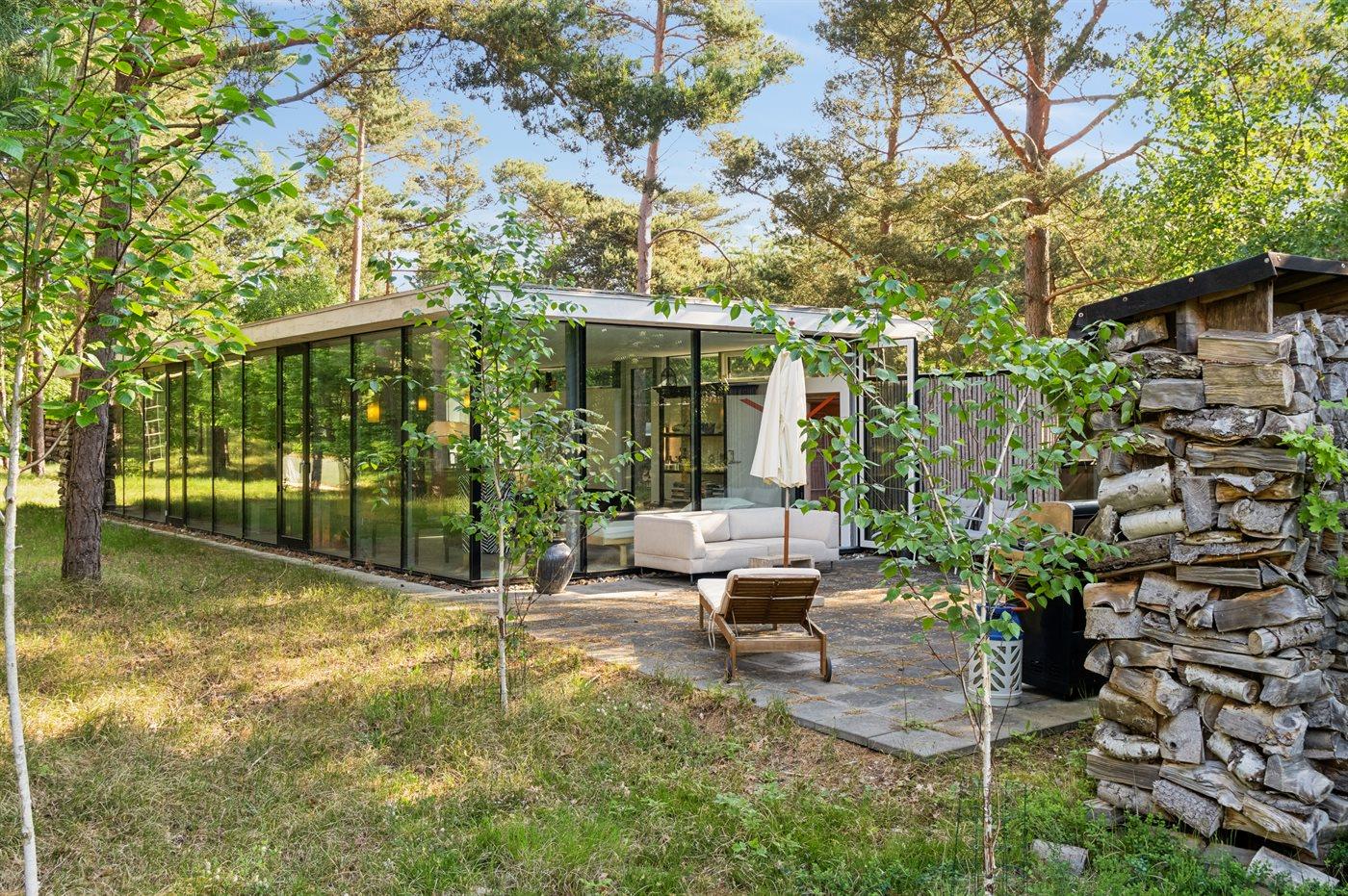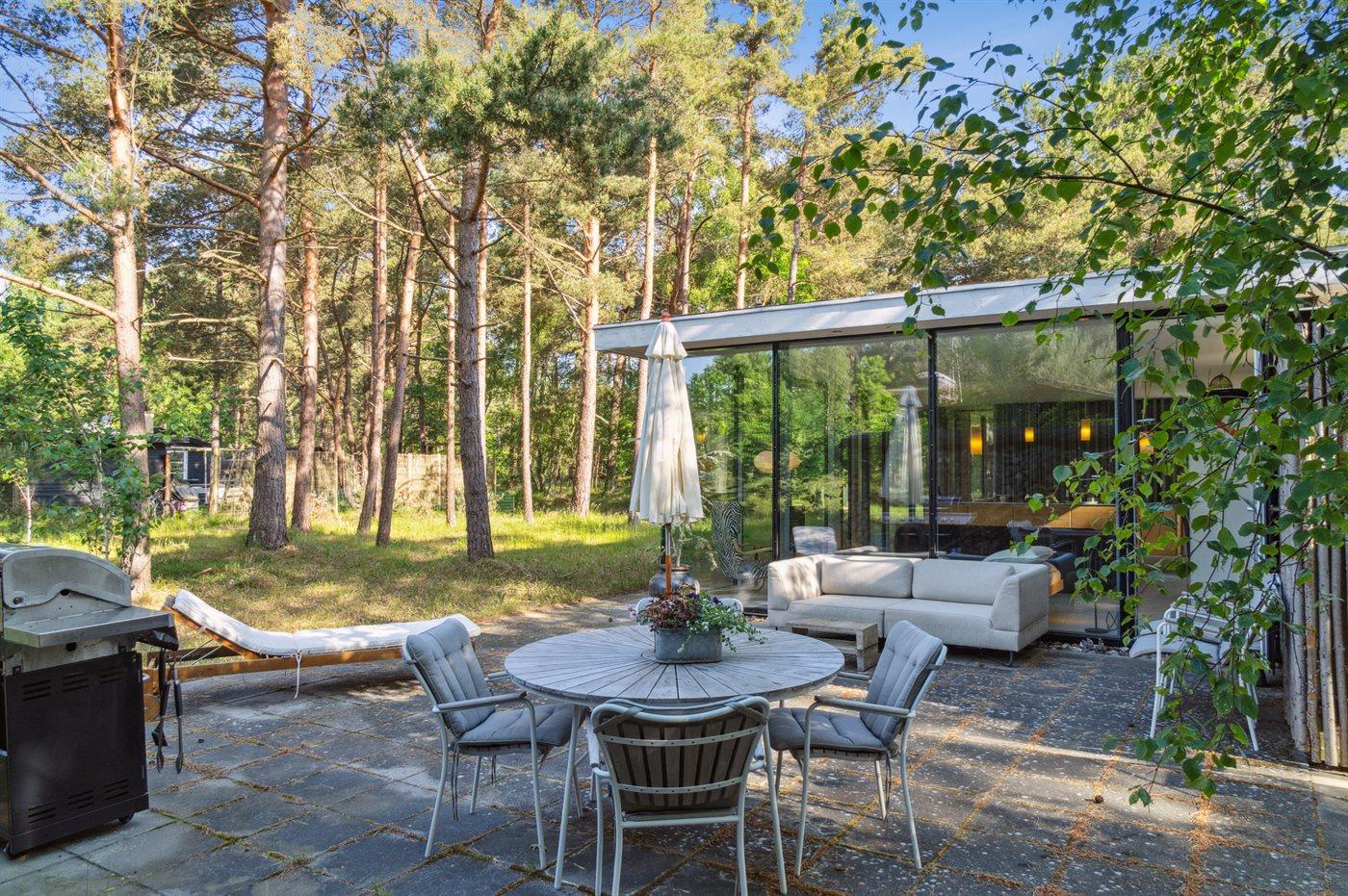 Arkitektonisk perle tæt på skov og strand med smagfuld indretning og stor terrasse.