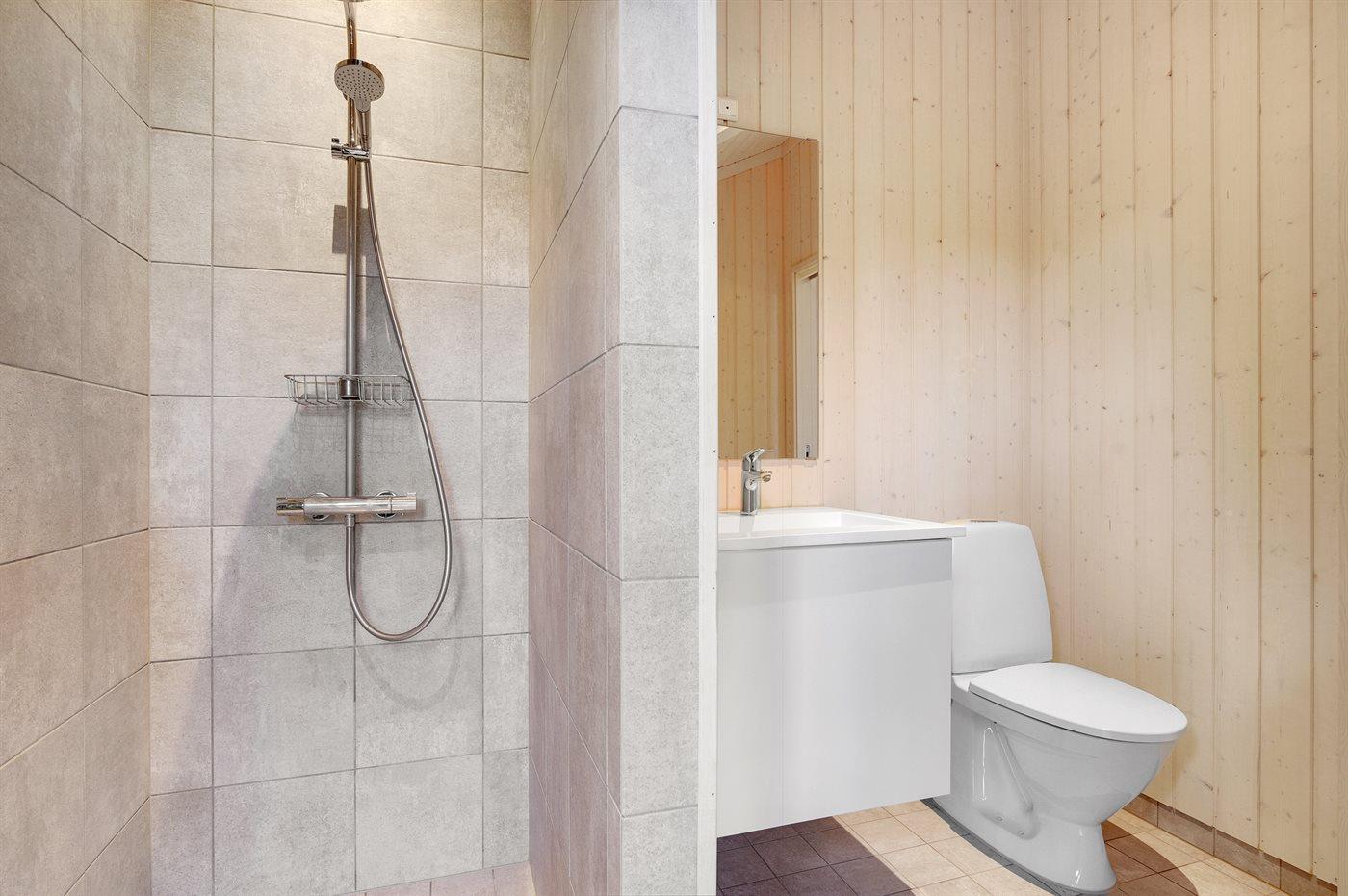 Der er 1 badeværelse med bruseniche og 1 toilet.. Der er gulvvarme på 1 badeværelse.