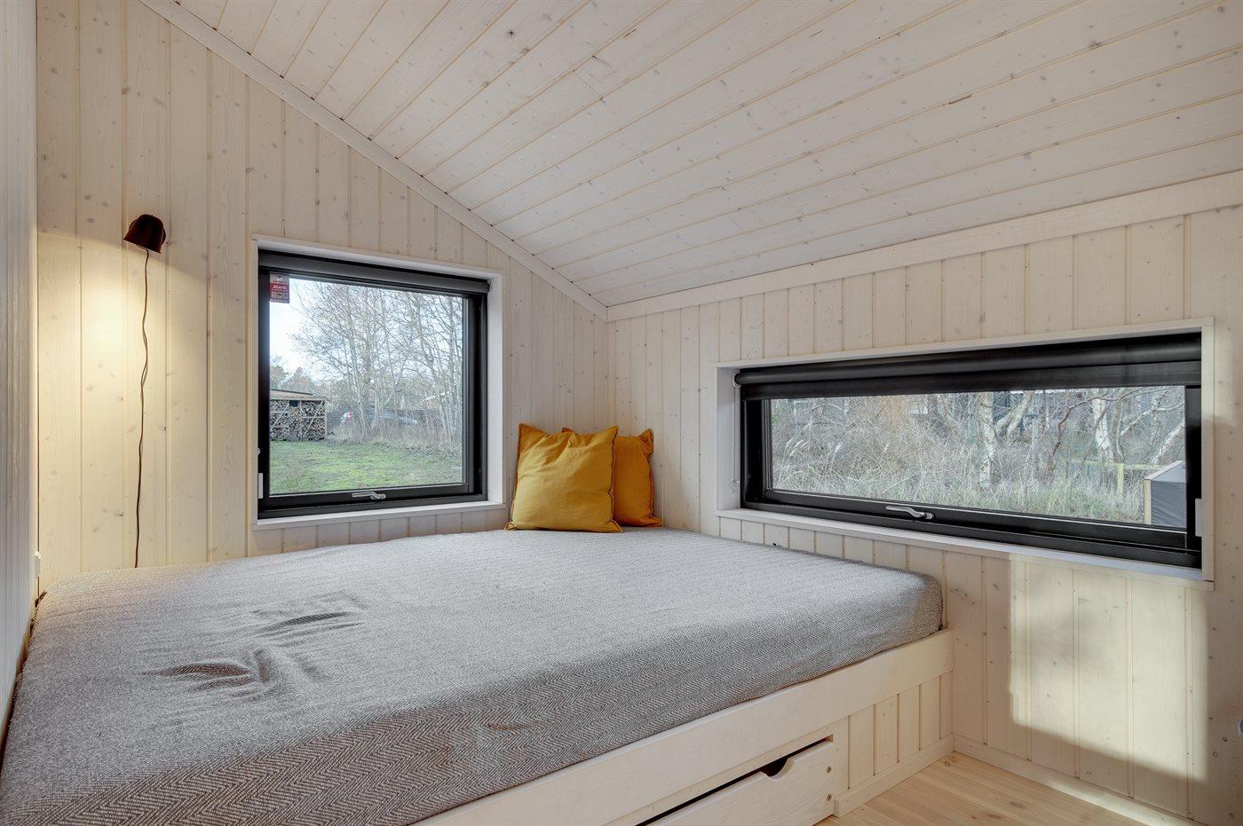 Der er i alt 2 soveværelser. Sovepladserne fordeler sig på: 2 sovepladser i dobbeltseng. 2 sovepladser i enkeltsenge. 2 sovepladser i alkove.- 2 af disse sovepladser befinder sig i stuen.