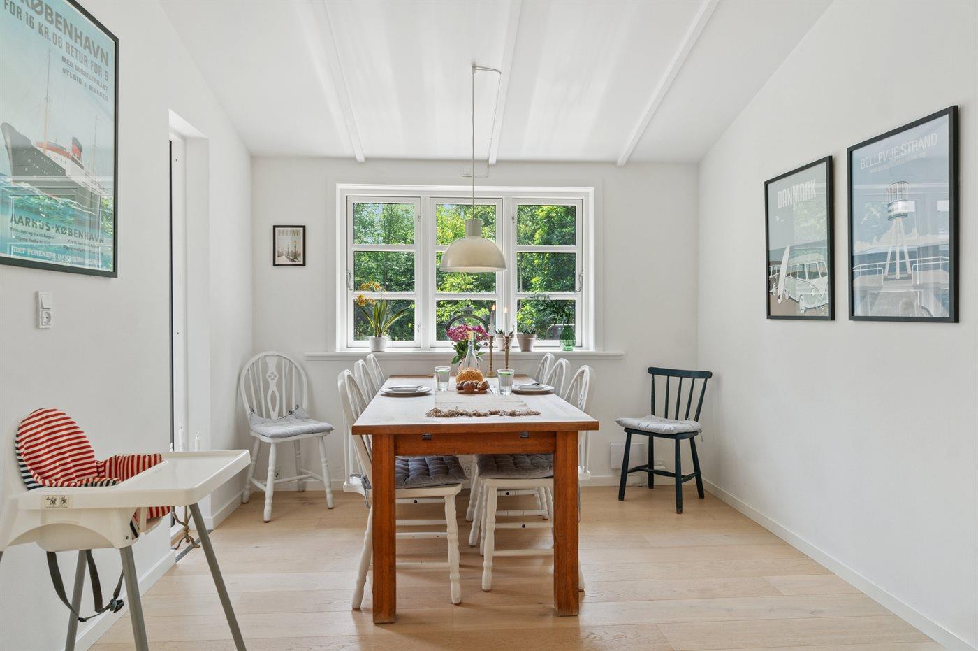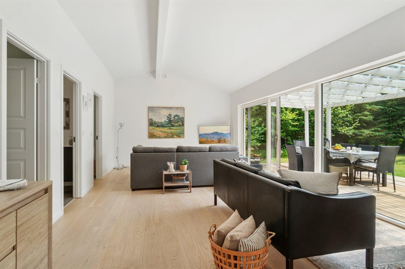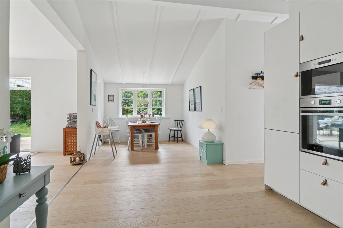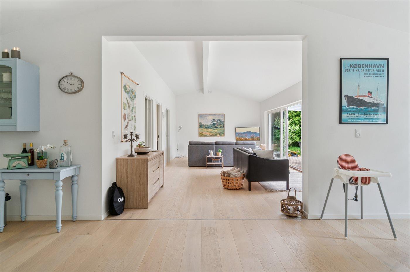 Huset er renoveret i 2025 og fremstår lyst og moderne. Husets hjerte er det store køkken-alrum, som ligger i åben forbindelse med stuen. Herfra er der udgang til den overdækkede terrasse og den store have, som indbyder til boldspil og leg med børnene.