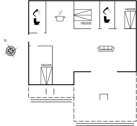 Der er i alt 3 soveværelser. Sovepladserne fordeler sig på: 6 sovepladser i dobbeltsenge. Derudover er der 1 stk. barneseng.