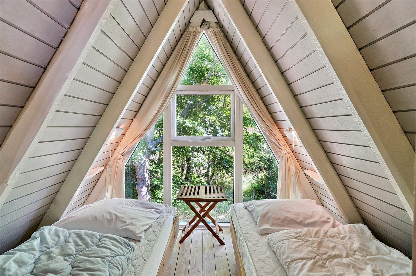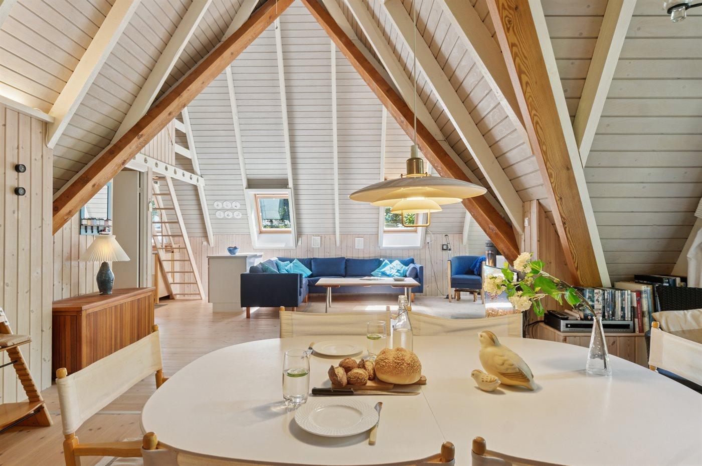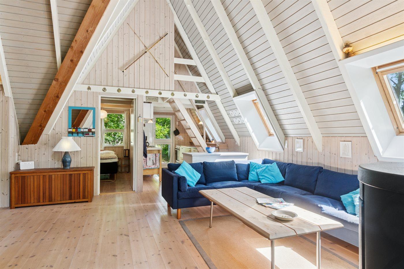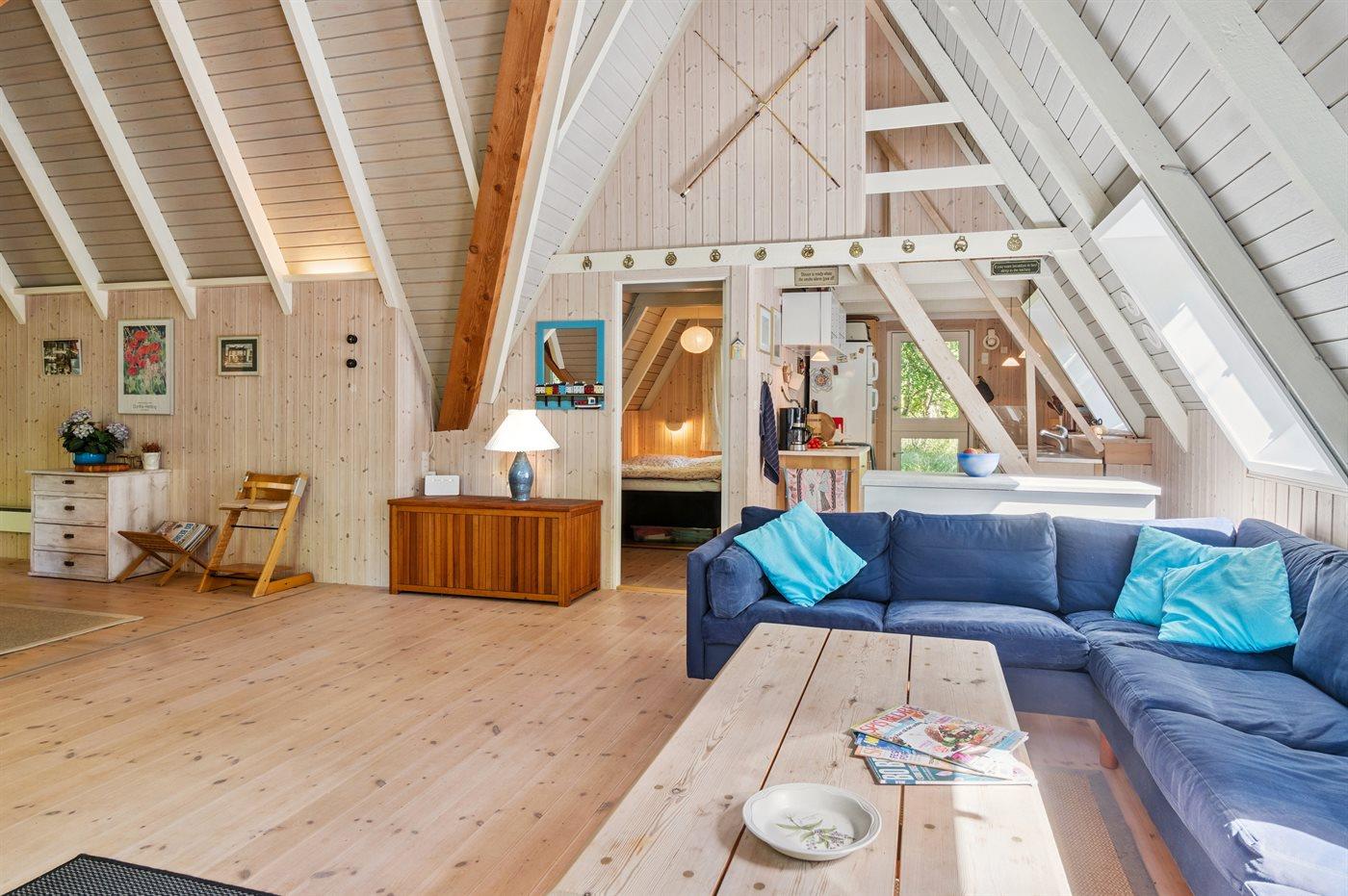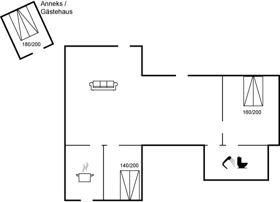 I huset er køkken, spiseplads og stue ud i et, og herfra er der udgang til den dejlige sydvendte terrasse. I selve huset er der 2 soveværelser med dobbeltsenge. Derudover er der 2 enkeltsenge på den højloftede hems. I annekset er der yderligere 2 sovepladser i dobbeltseng.
