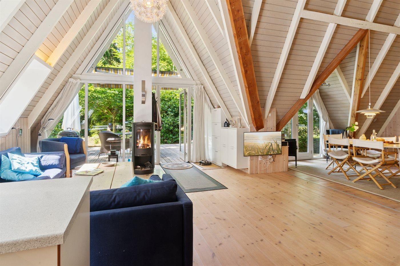 Huset er beliggende i et roligt sommerhusområde og ligger ugenert omgivet af beplantning og høje træer.