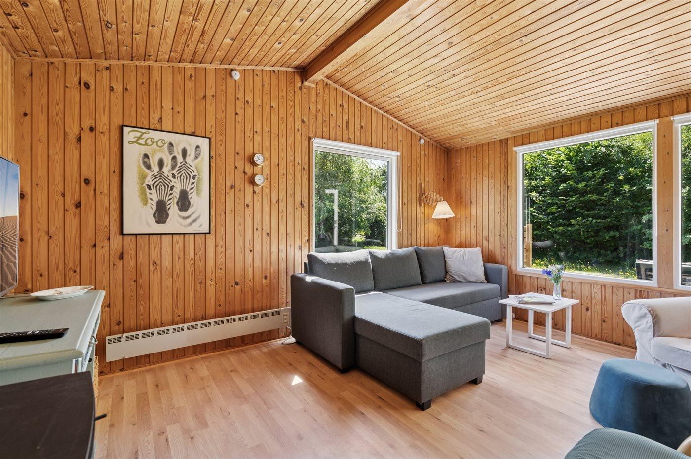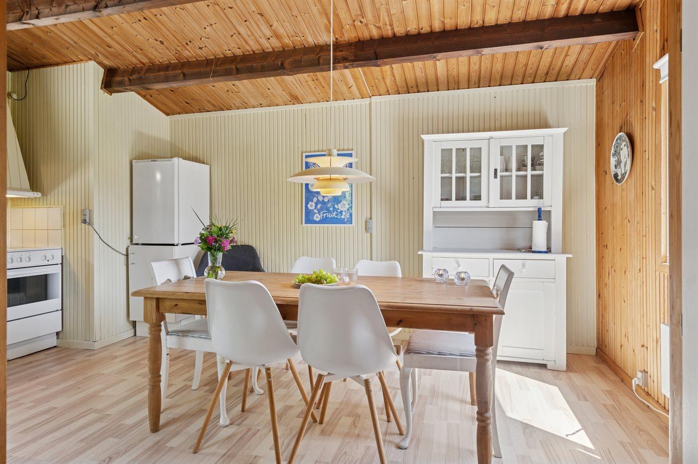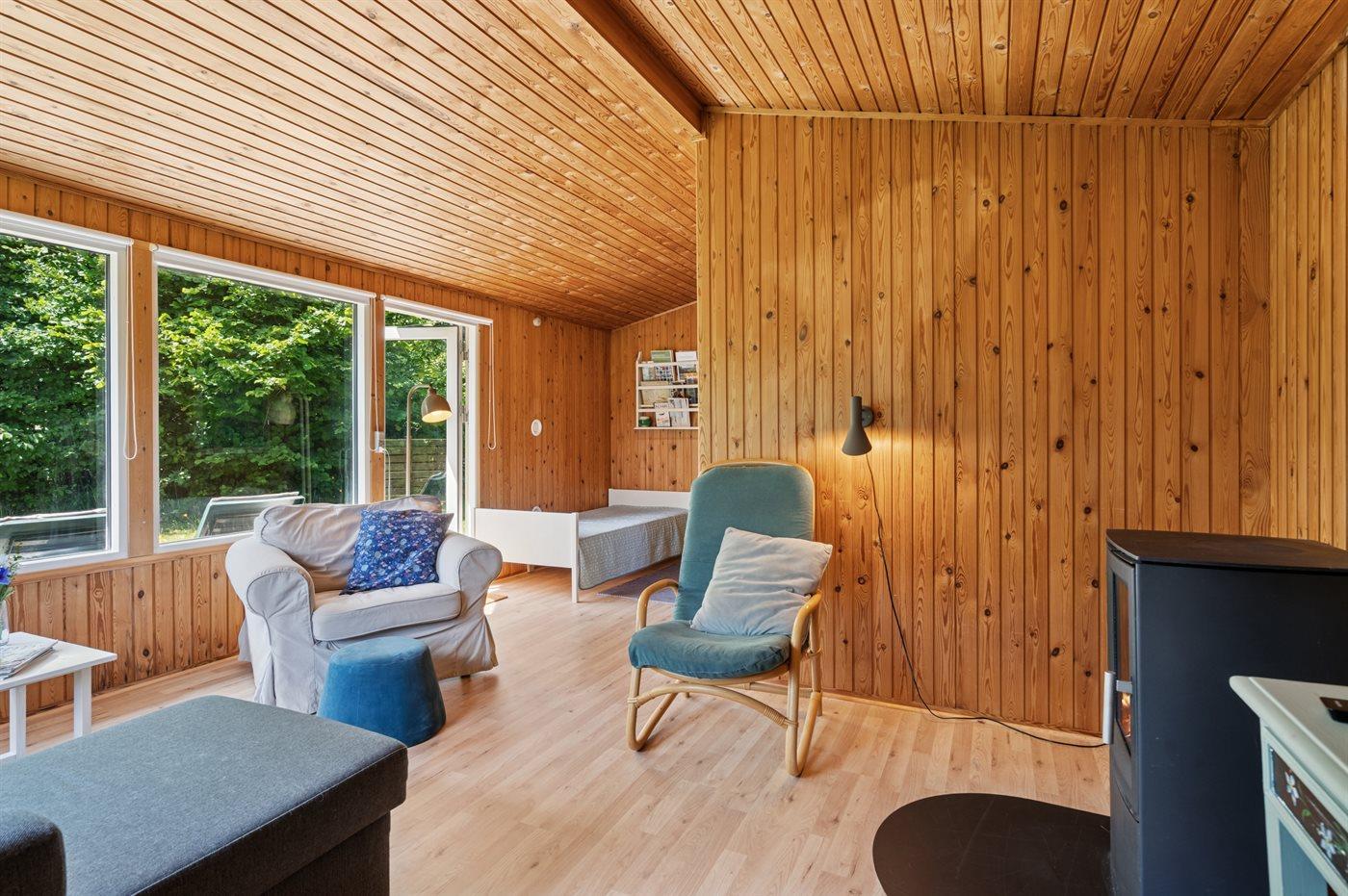 Huset indeholder et dejligt køkkenalrum, hvor der er rig mulighed for at hygge sig og være sammen. Fra den lyse stue med brændeovn er der udgang til terrassen og den store have, hvor der rig mulighed for at nyde det gode vejr og lege med børnene. Under den overdækkede del af terrassen er god mulighed for at finde skygge og læ og nyde de lange lyse sommeraftener. I selve huset er der 1 soveværelse med dobbeltseng. I det tilstødende anneks er der 2 dobbeltsenge med i alt 4 sovepladser.