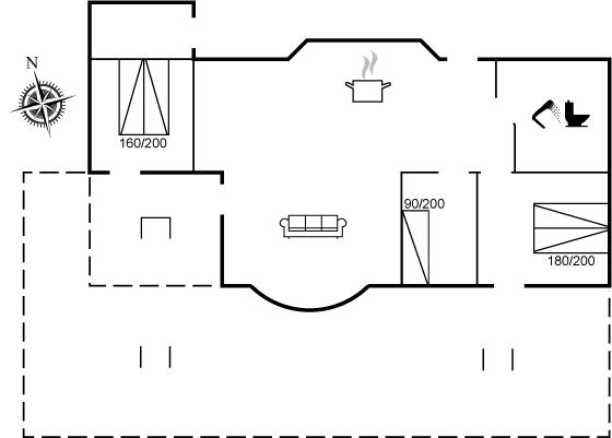 Der er i alt 3 soveværelser. Sovepladserne fordeler sig på: 4 sovepladser i dobbeltsenge. 1 soveplads i enkeltseng.