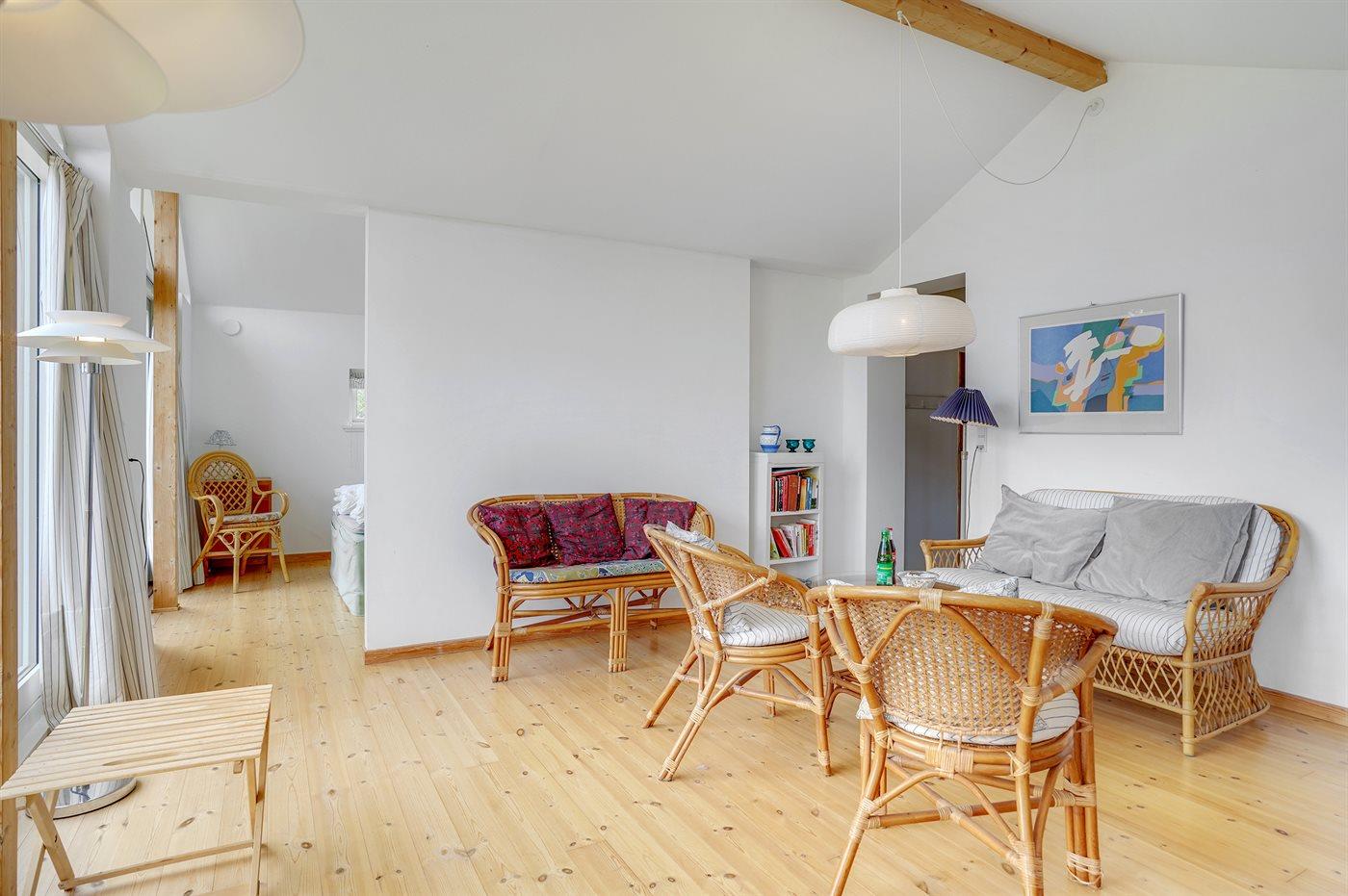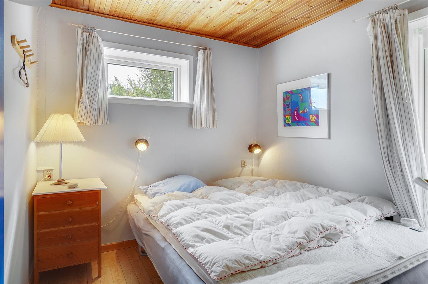 Der er i alt 3 soveværelser. Sovepladserne fordeler sig på: 4 sovepladser i dobbeltsenge. 2 sovepladser i enkeltsenge.