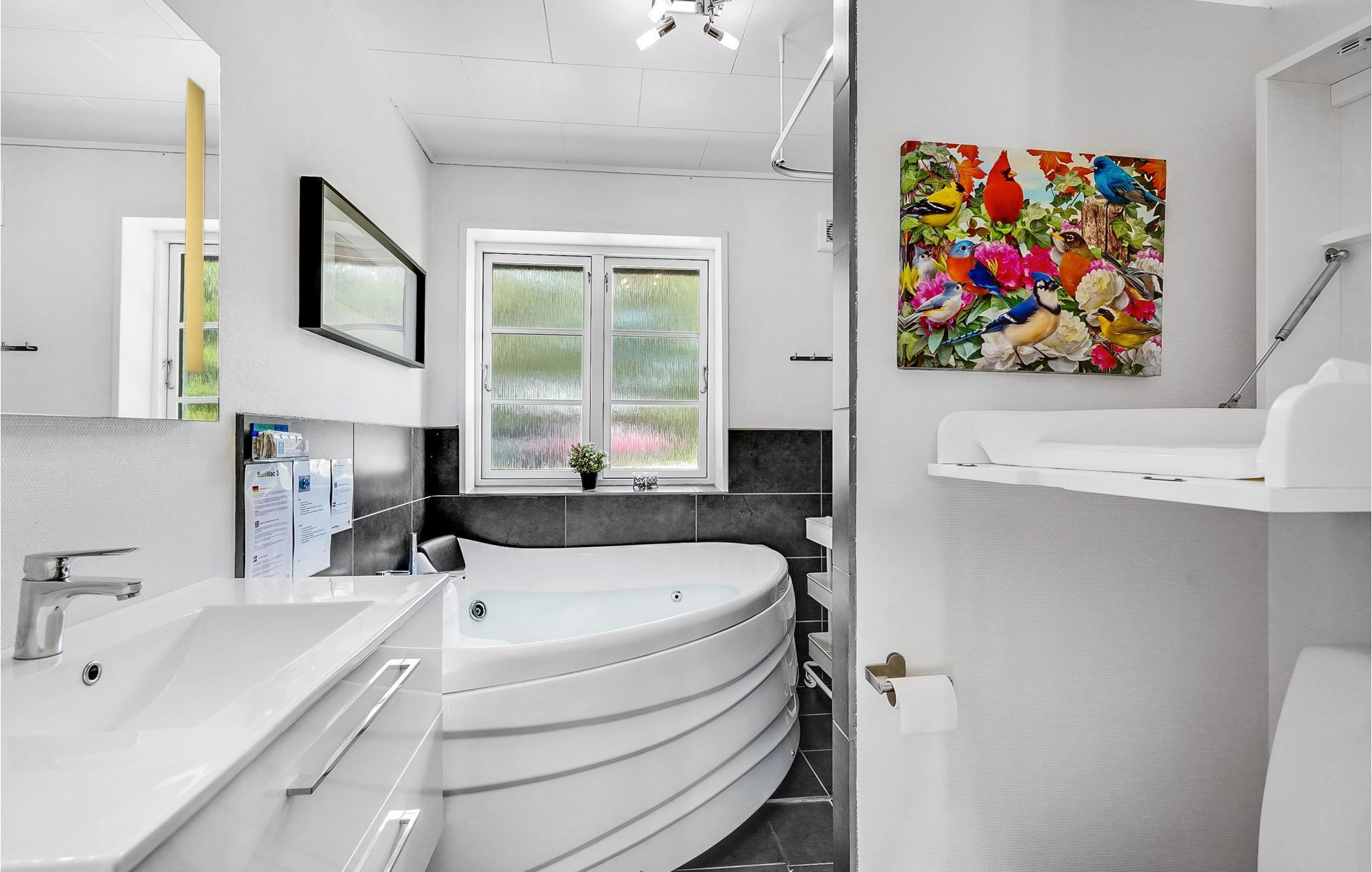 Hold en hyggelig ferie i dette rummelige feriehus med sauna og spabad.