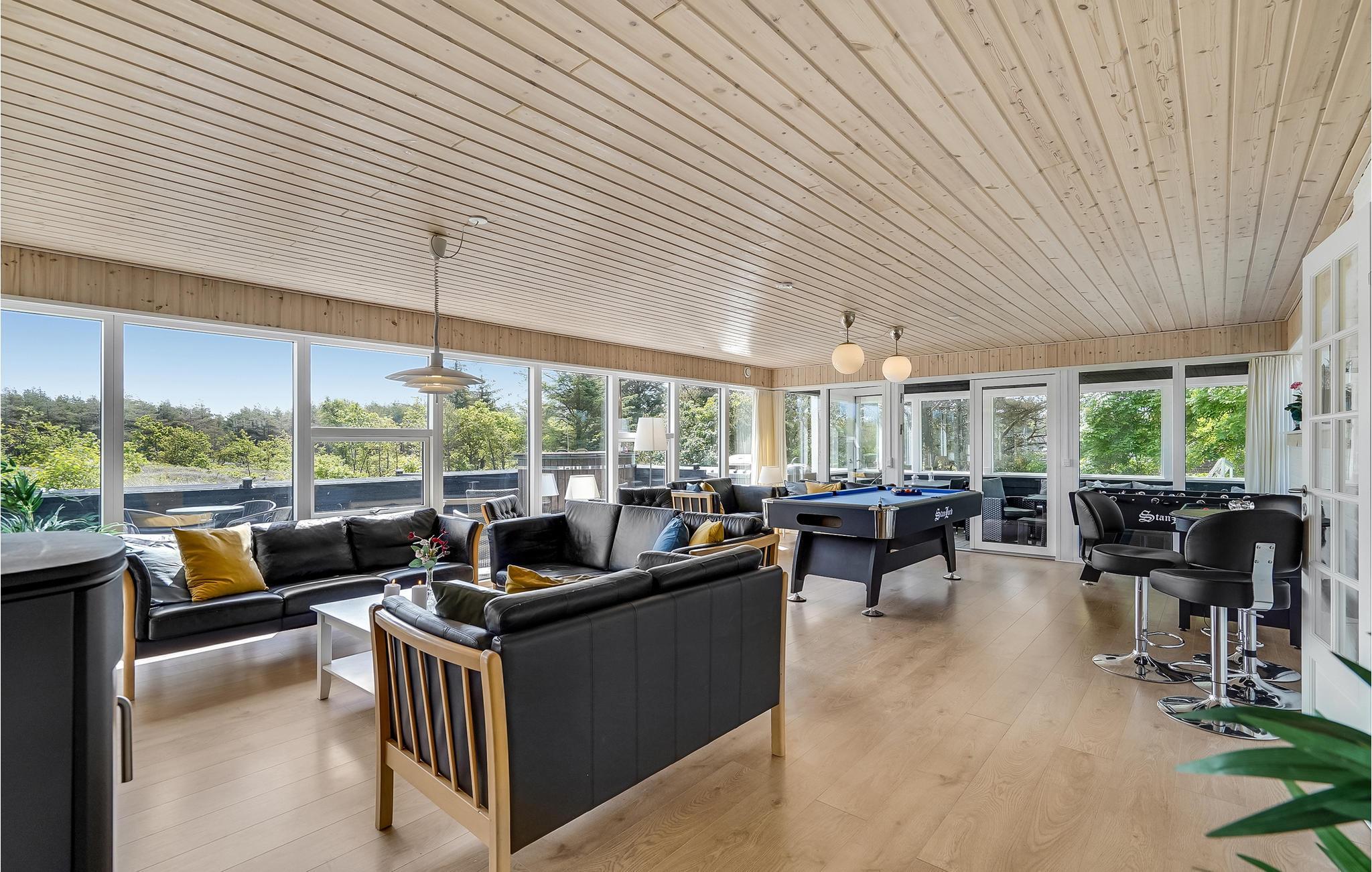 Med adskillige aktiviteter for børn og voksne, samt et rummeligt og lyst interiør, er dette komfortable feriehus en dejlig oase til familiesammenkomster eller et skønt afbræk med vennerne. Glæd jer til dejlige måltider ved det lange spisebord og gode samtaler ved brændeovnen. Snup en dyst ved bordfodboldbordet, spil billard eller PlayStation, forkæl jer selv med afslappende stunder i spabadet eller saunaen eller hyg jer med en filmaften.