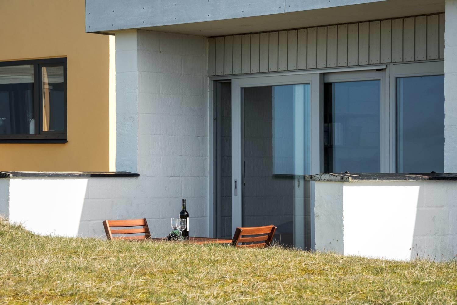 Fra terrassen har I udsigt til klitterne og det smukke naturområde omkring Nymindegab. Her hører man kun fuglene og vinden i græsset – en sand oase af ro.