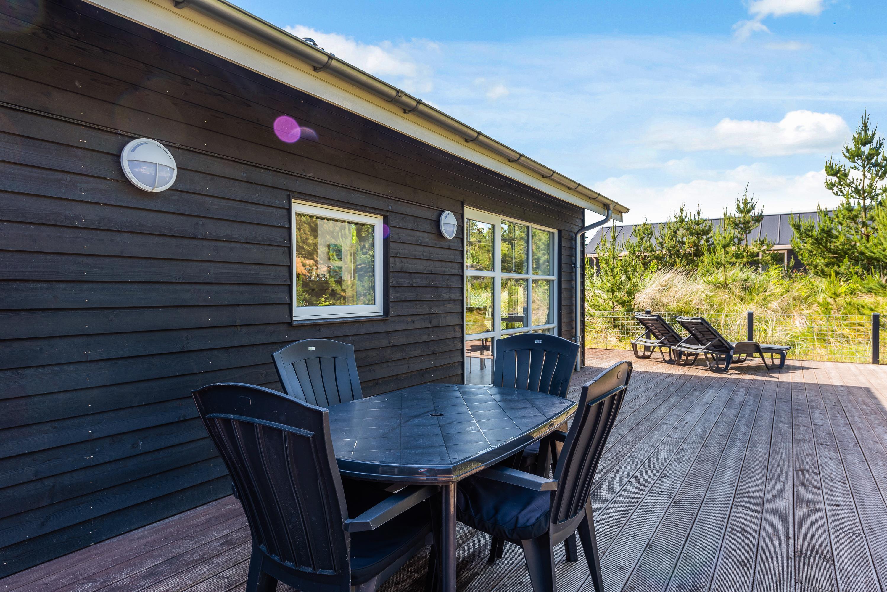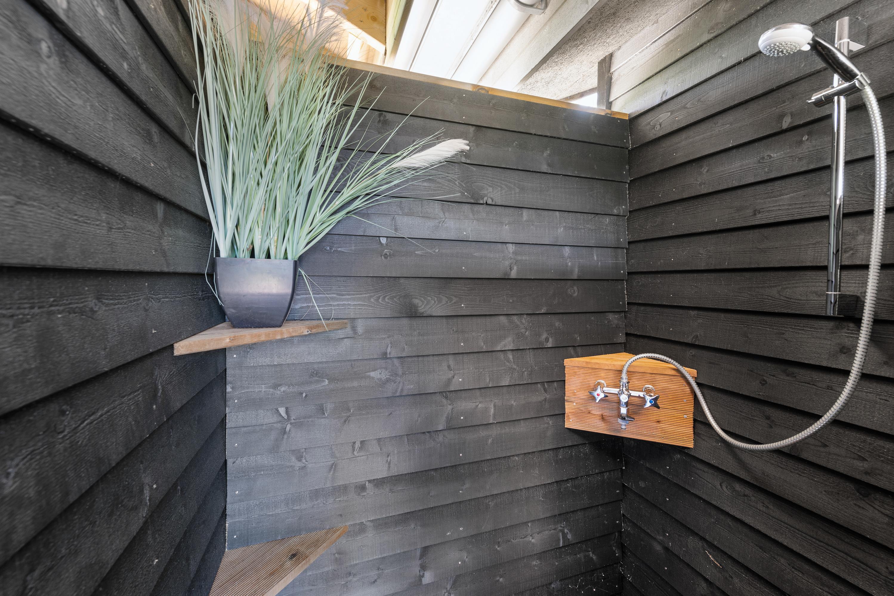 Den flotte træterrasse er udstyret med havemøbler, liggestole og en grill, mens de mindste kan glæde sig over sandkassen. Et ekstra highlight er den udendørs bruser, hvor de friske kan snuppe et bad under åben himmel, og fødderne kan skylles rene for sand efter en tur ved Vesterhavet. Den udendørs bruser er både udstyret med koldt og varmt vand og kan benyttes fra april til november.