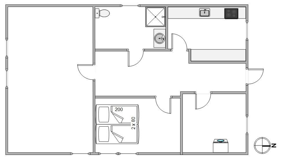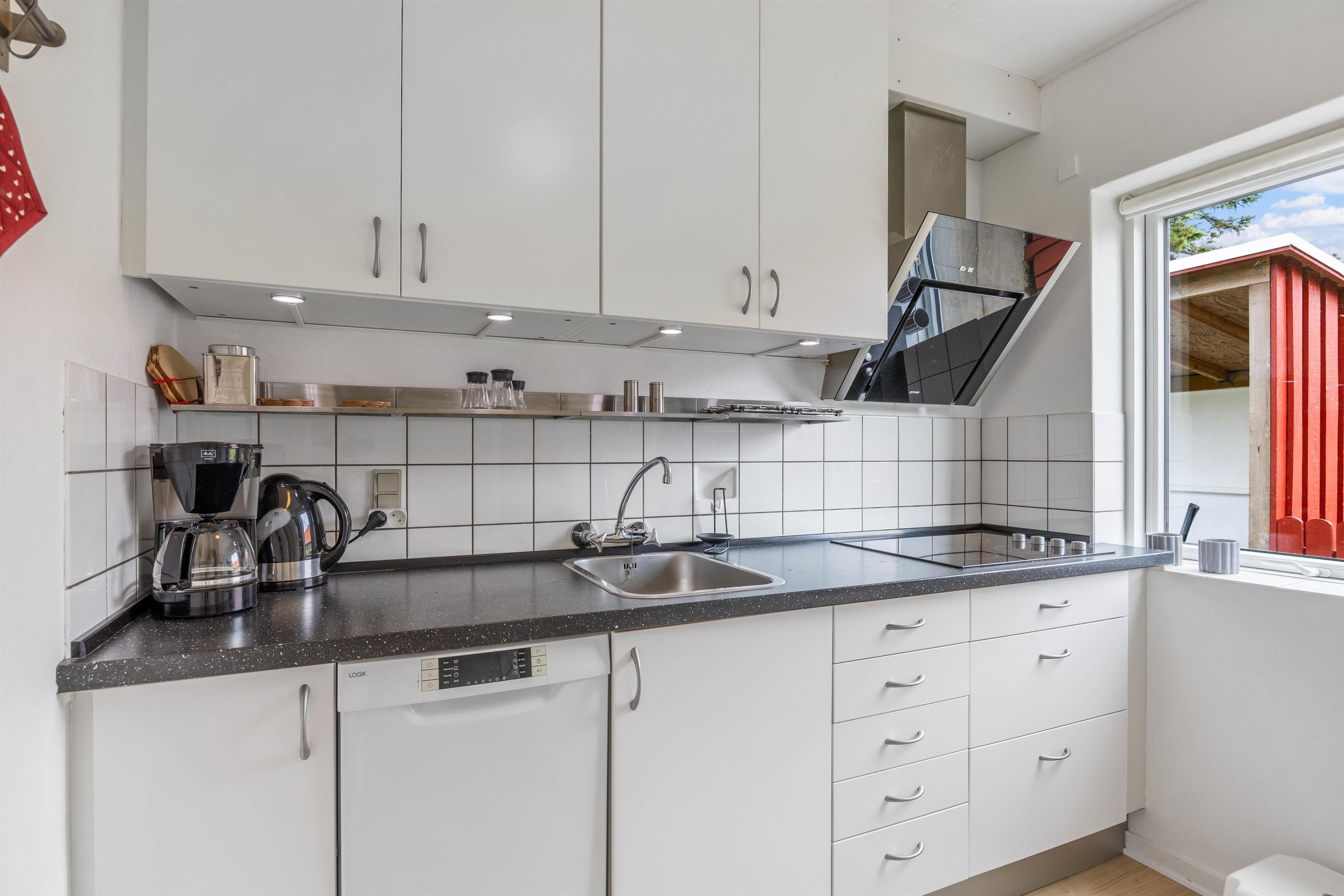 Sommerhuset på Skovbrynet 48 er udstyret med alle de moderne faciliteter, der sikrer en komfortabel ferie. Det inkluderer en dobbeltseng i et enkelt og hyggeligt soverum, der er perfekt til en god nattesøvn. Sommerhuset har også køkken med opvaskemaskine samt vaskemaskine og tørretumbler, så I nemt kan tage hånd om vasketøjet under jeres ophold. Den energibesparende varmepumpe samt gulvvarme i badeværelset sikrer, at I altid har det varmt og behageligt, selv på kølige dage.