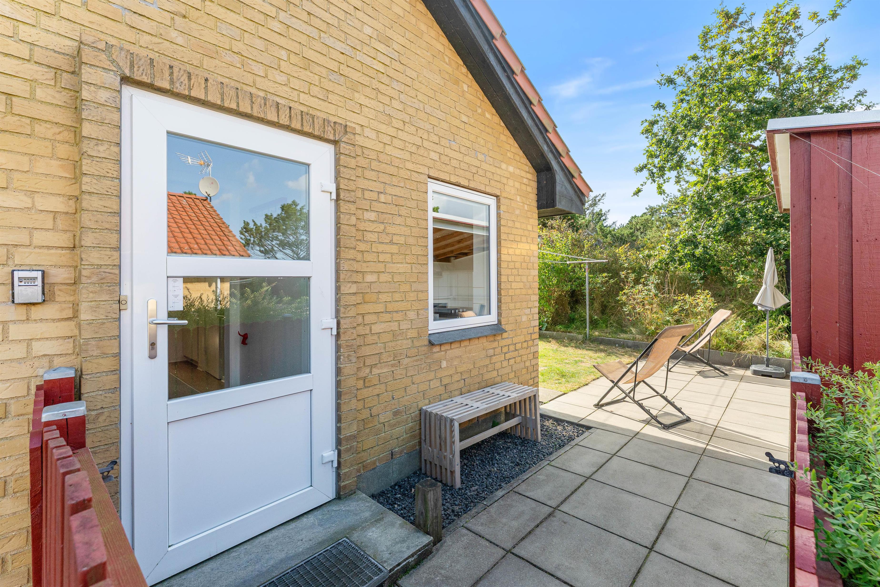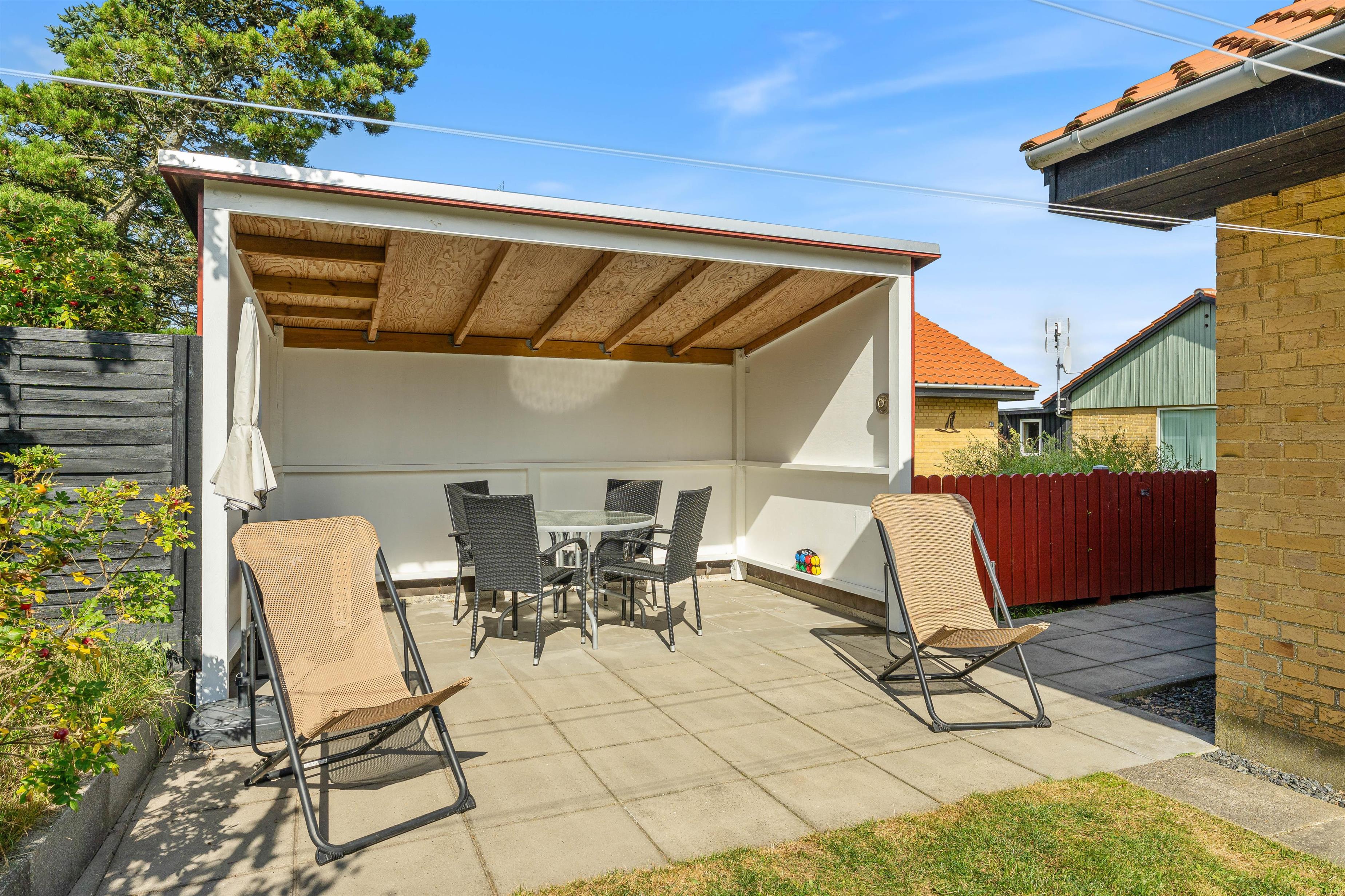 Sommerhuset har en skøn afskærmet terrasse, hvor I kan nyde jeres måltider i det fri eller bare slappe af med en god bog. Der er også en overdækket terrasse, hvis vejret skulle vise sig fra sin våde side, så I stadig kan opholde jer udendørs. Til madlavning i det fri er der en grill samt havemøbler til rådighed, så I kan tilberede lækre grillretter og nyde dem under åben himmel.