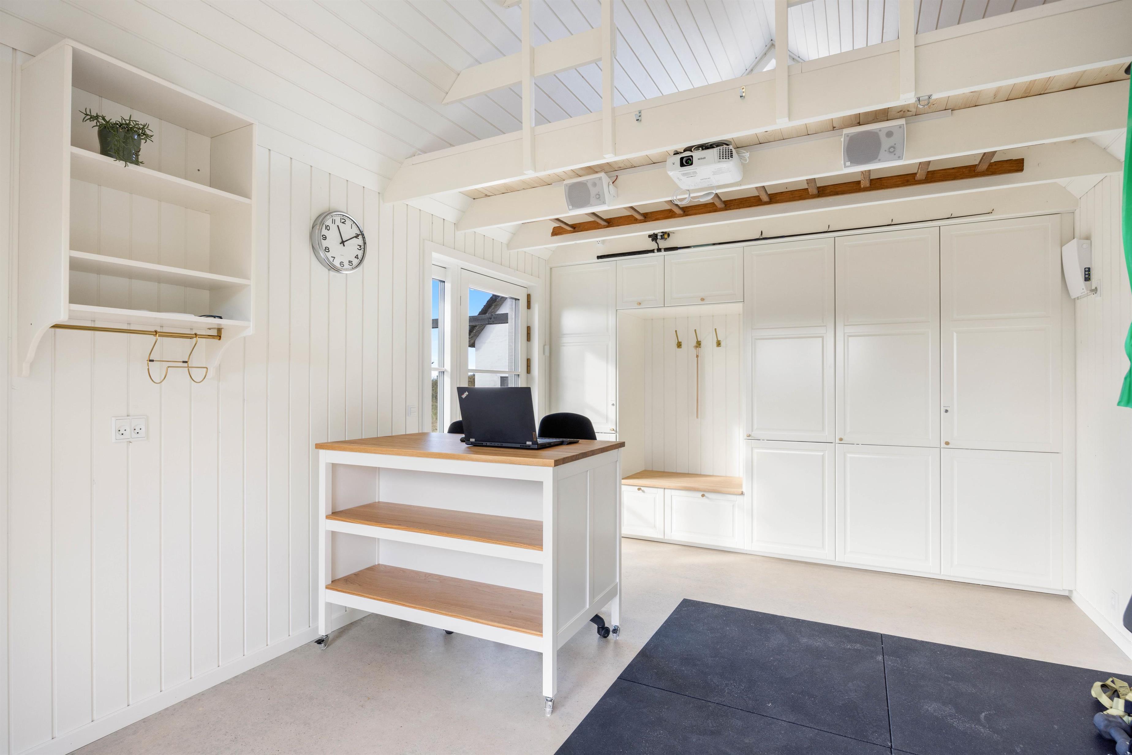 I sommerhusets skur finder i et fint multirum, der er bygget i 2025. Her kan der trænes og ses film på lærred med projekteren. Både store og små kan her få mange hyggelige timer til at gå.
