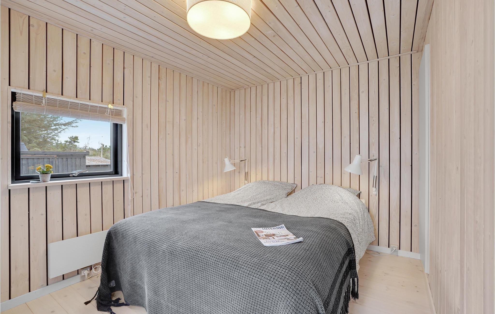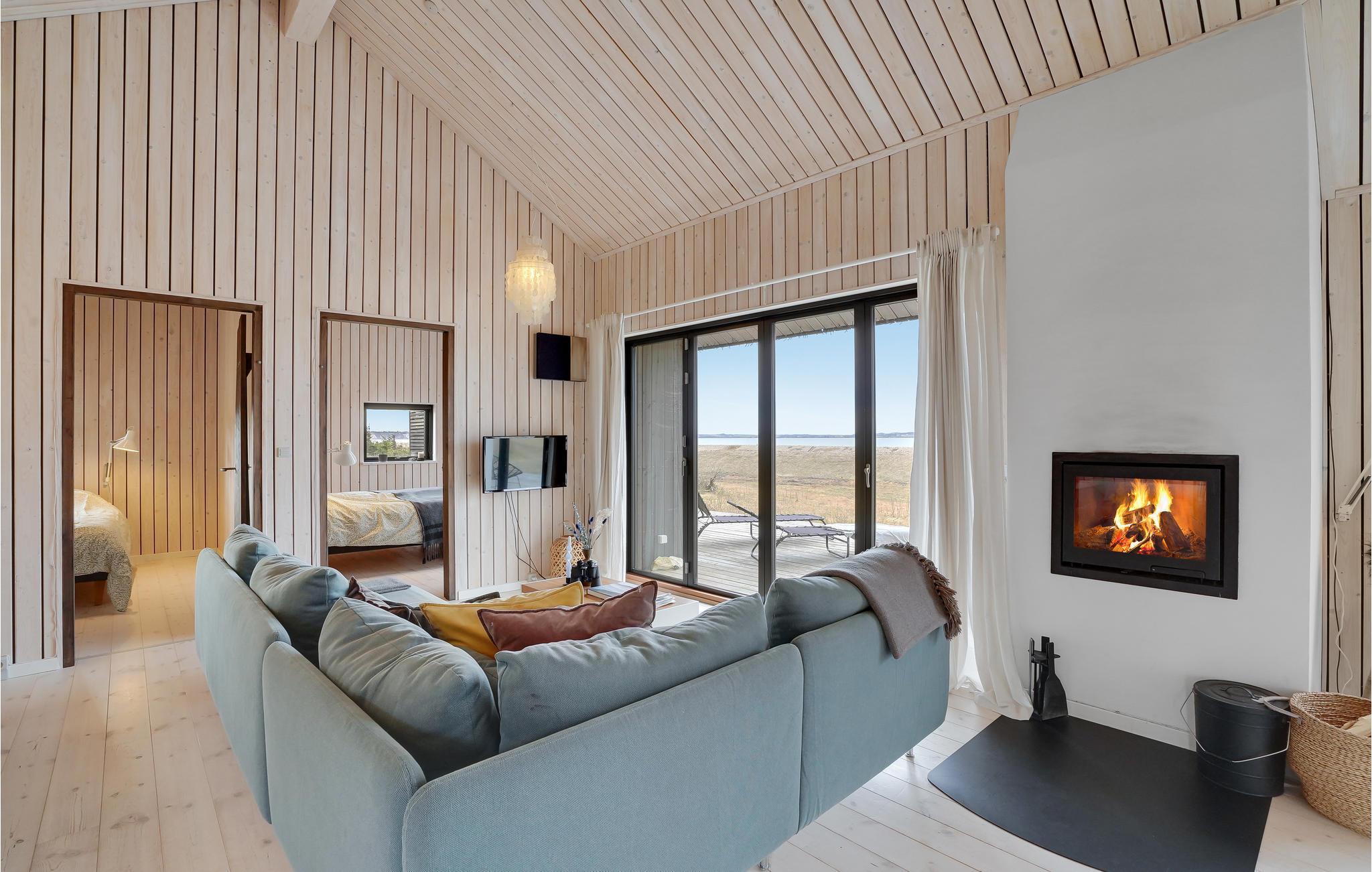 Indendørs vil dette smukke træhus imponere jer med dets hygge og smukke detaljer som den integrerede pejs i stuen. Efter en lang gåtur på stranden kan I slappe af i den komfortable sofa, hvorfra I har en fantastisk udsigt over fjorden. Der er også 3 smukke soveværelser og 1 badeværelse.