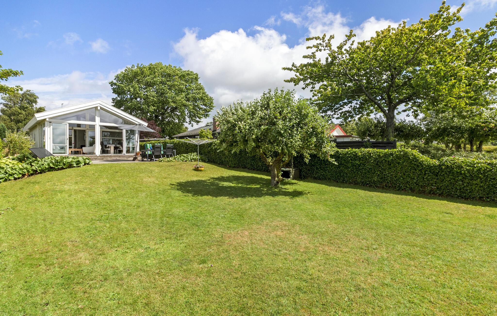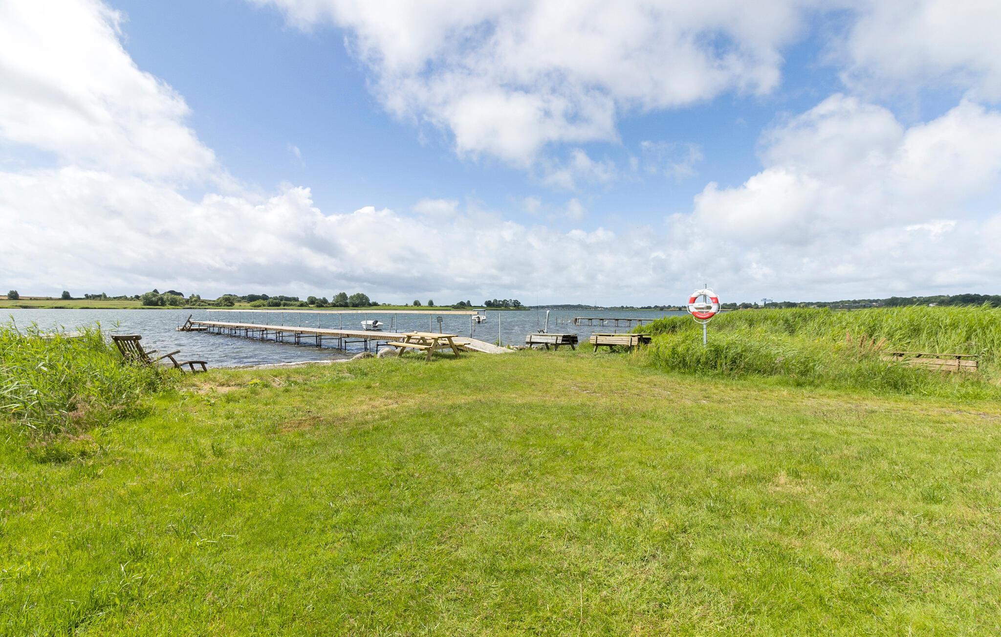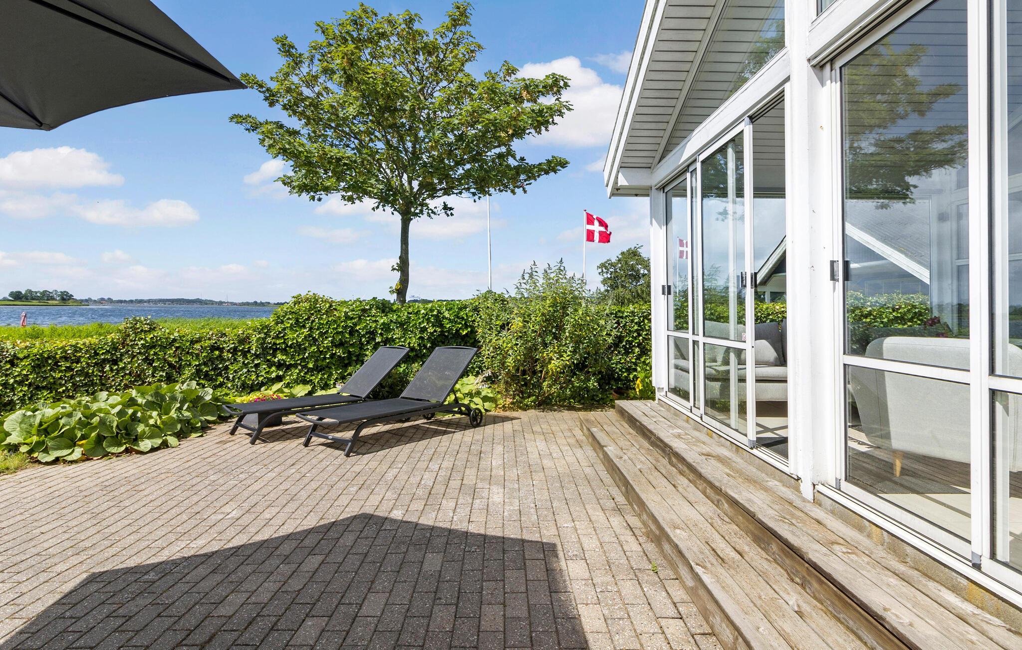 Til huset hører en dejlig terrasse og en have, hvor I kan dase i solen og lade børnene spæne rundt med en bold mellem fødderne. Haven går direkte ned til fjorden, hvor der er anløbsbro om sommeren, og hvor friske dyp i baljen kommer til at gå hånd i hånd med fornøjelige fisketure.