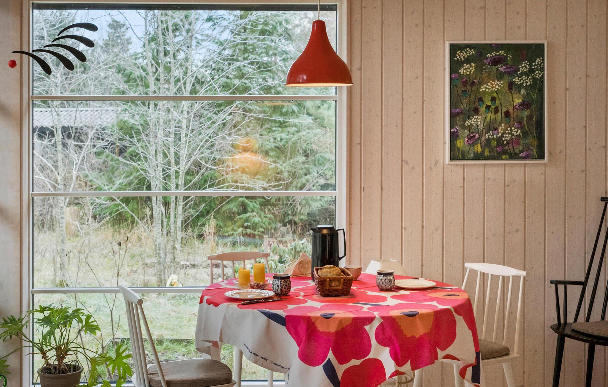 I jeres charmerende sommerhus i Isefjorden finder I ro og afslapning midt i den maleriske natur. Det stilfuldt indrettede hus med mange nænsomt designede detaljer byder på en åben opholdsstue med store vinduespartier, der slipper masser af naturligt lys ind og giver udsigt til de grønne omgivelser. Find jer godt til rette på de komfortable lænestole eller sofa og nyd den knitrende brændeovn på køligere dage. Det moderne køkken lægger op til at tilberede lækre måltider, som I kan nyde ved spisebordet med udsigt over haven.