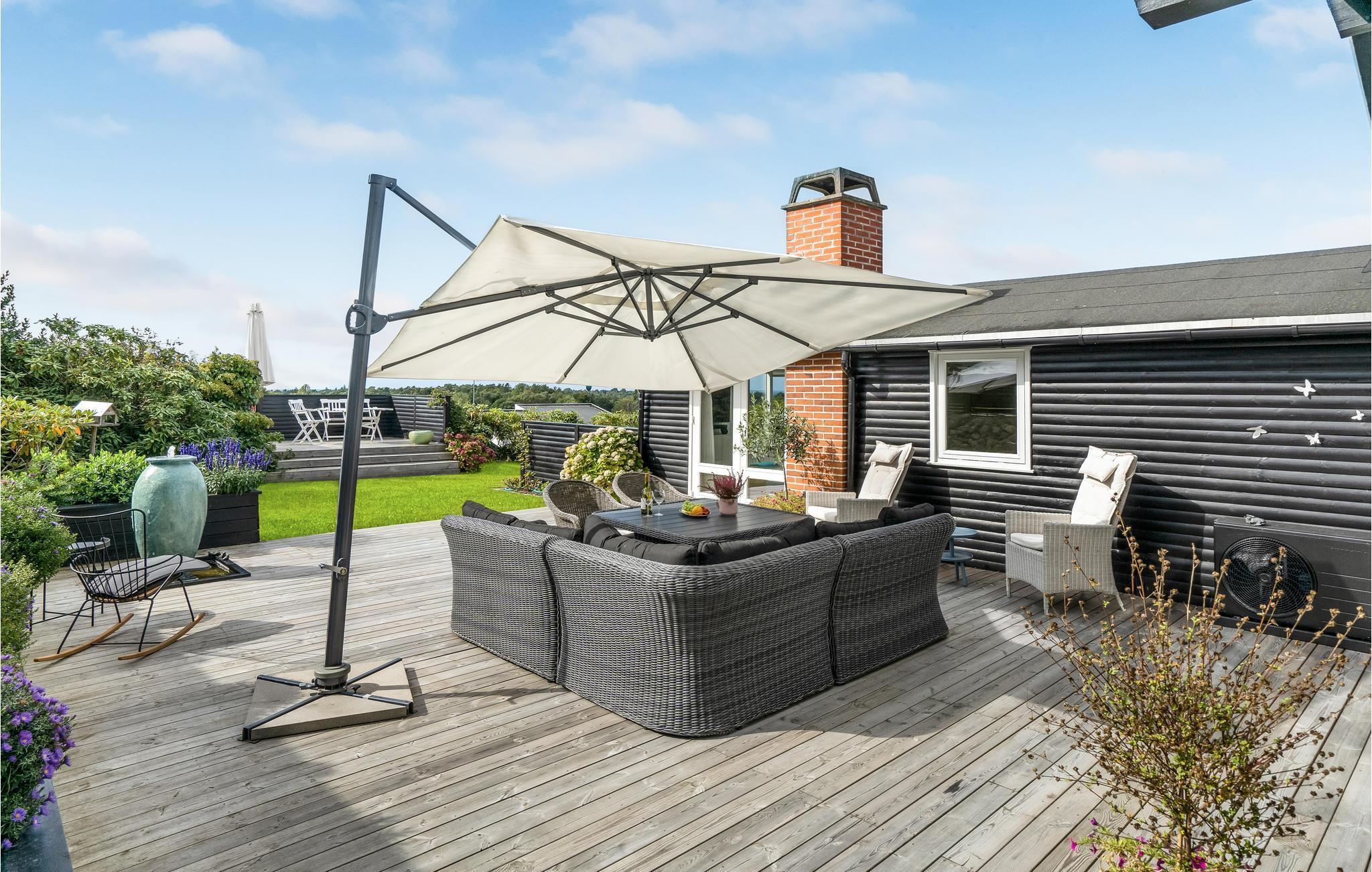 Slap af på den delvist overdækkede terrasse i komfortable havemøbler, nyd de lange sommeraftener og lækre retter fra grillen.