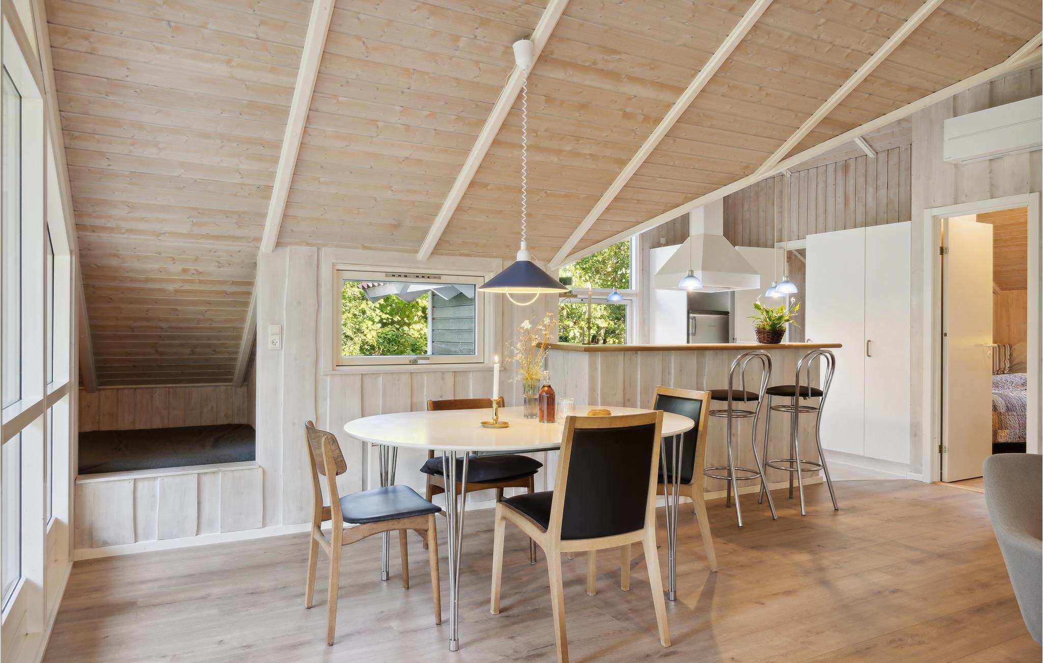 Glæd jer til nogle feriedage, hvor stranden kun er en lille gåtur væk. Dette sommerhus i Ordrup er lyst og klassisk indrettet og har gode rammer til fælles aktiviteter, så her er det nemt at slappe af og have det rart. Dæk op til dagens måltider med udsigt til den grønne have og læn jer senere godt tilbage i sofaen med ild i brændeovnen, når I vender hjem fra dagens eventyr. Oven på en lang frisk tur ved vandet er det også skønt at komme hjem og få varmen i spabadet.