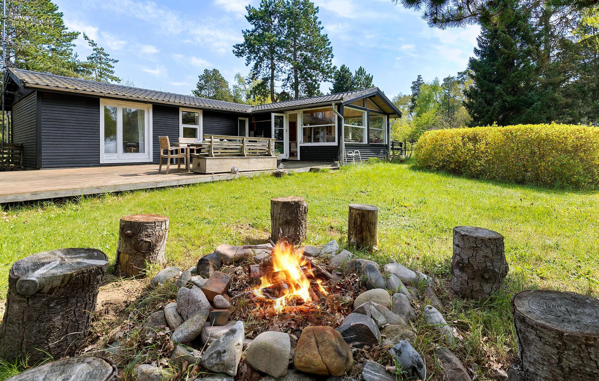 På de varme dage kan I trække udenfor og finde sol, skygge og læ efter behov på de to dejlige terrasser, mens børnene løber rundt og leger i haven. Lad en smuk sommeraften gå på hæld med snobrød og skumfiduser ved bålpladsen, mens I lægger planer for de kommende dage.