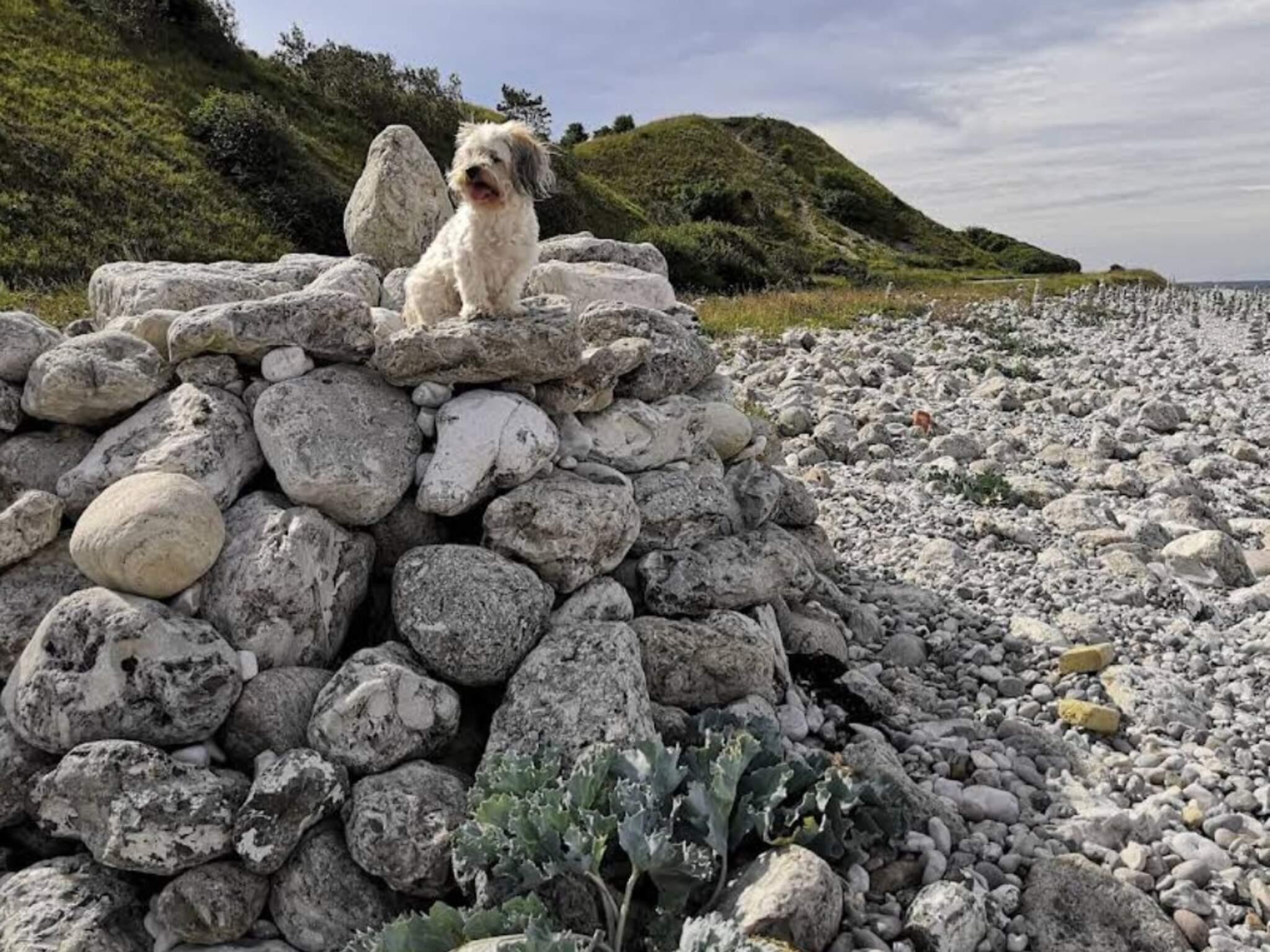 Sommerhus med stor terrasse nær kysten i Overby Lyng, ideelt til familieferie med fodboldmål og plads til husdyr.