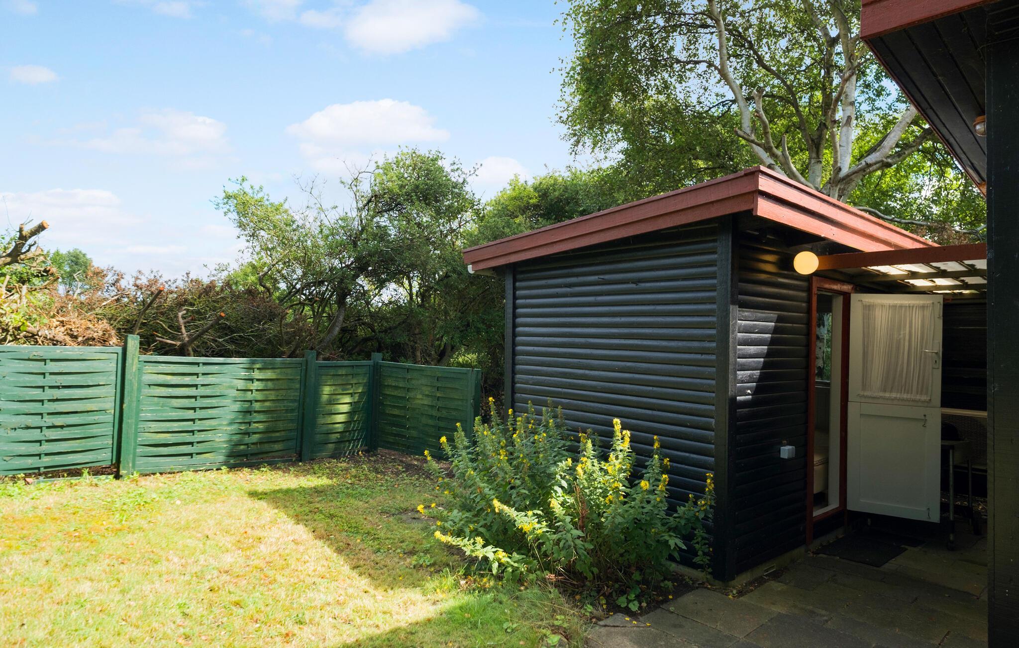 Hyggeligt træhus nær Overby Lyng Strand med have og privat atmosfære til en afslappende ferie.