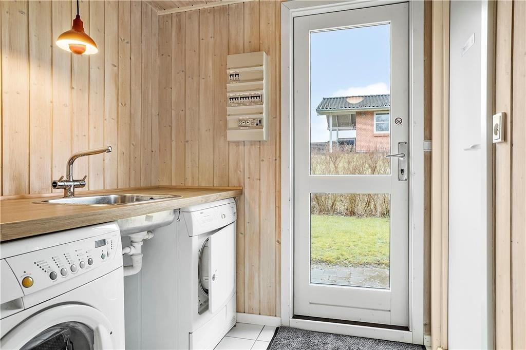 I dette sommerhus er der ved indgangen et bryggers med både vaskemaskine og tørretumbler. Så I kan nemt få vasket badetøjet og håndklæderne, hvis de trænger.