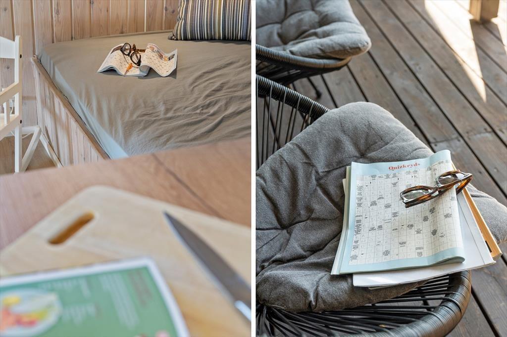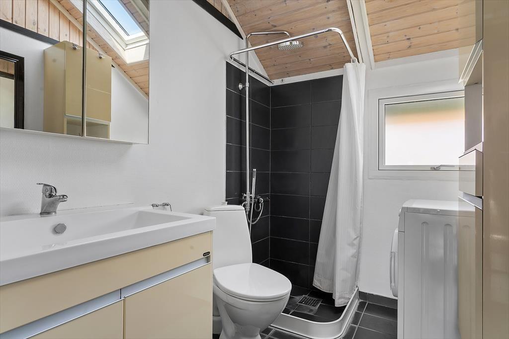 Sommerhuset fremstår lyst og indbydende med god plads til hele familien. Køkken/alrum og opholdsstue i et og med loft til kip samt direkte udgang til terrasse. Stuen har lækre møbler, som indbyder til såvel hygge som TV kig efter lyst og behov: Flere kanaler (dansk, tysk, svensk og norsk) at vælge mellem. Internet og gratis WIFI. Stuen har masser af lysindfald og fremstår velholdt og lækker. Huset har varepumpe og elvarme. Der er 3 soverum – et med dobbeltseng og skabe, et med 2 enkeltsenge og et med køjeseng samt alkove i alrummet. Barneseng og barnestol forefindes. Badeværelset er ligeledes lyst og indbydende og forsynet med bruser og vaskemaskine.