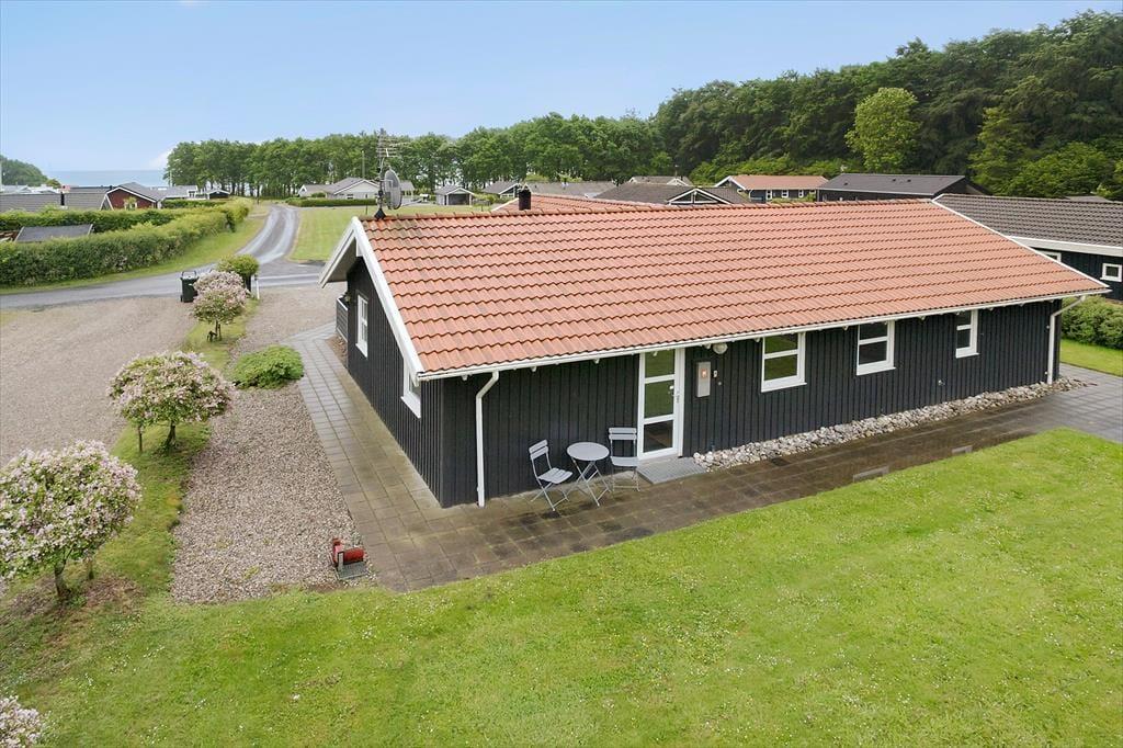 Sommerhuset ligger i den skønne feriekoloni Pøt Strandby tæt på Juelsminde. Husets placering i et lukket vænge tæt på skov og strand, kan I nyde ferien ugeneret og i rolige omgivelser. Omkring huset er en dejlig have med en græsplæne, så der er god plads til at spille bold, tage sig en gyngetur eller lægge sig i græsset og nyde den friske havluft. En flisegang går rundt om huset, hvilket gør det let for børn at lege med medbragte biler. På den store terrasse kan I samles udenfor og nyde de dejlige danske sommeraftener. Terrassen er helt lukket, så her er det også muligt at lade jeres hund gå frit omkring Få minutters gang fra på huset ligger en naturlegeplads, hvor børn som voksne kan boltre sig eller du kan tage dine kære i hånden på en kort gåtur ned til den lokale strand, hvor naturen er helt tæt på.