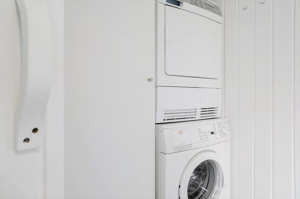 I huset er der også en vaskemaskine og en tørretumbler, så praktikken er på plads, når hele familien er i sommerhus.