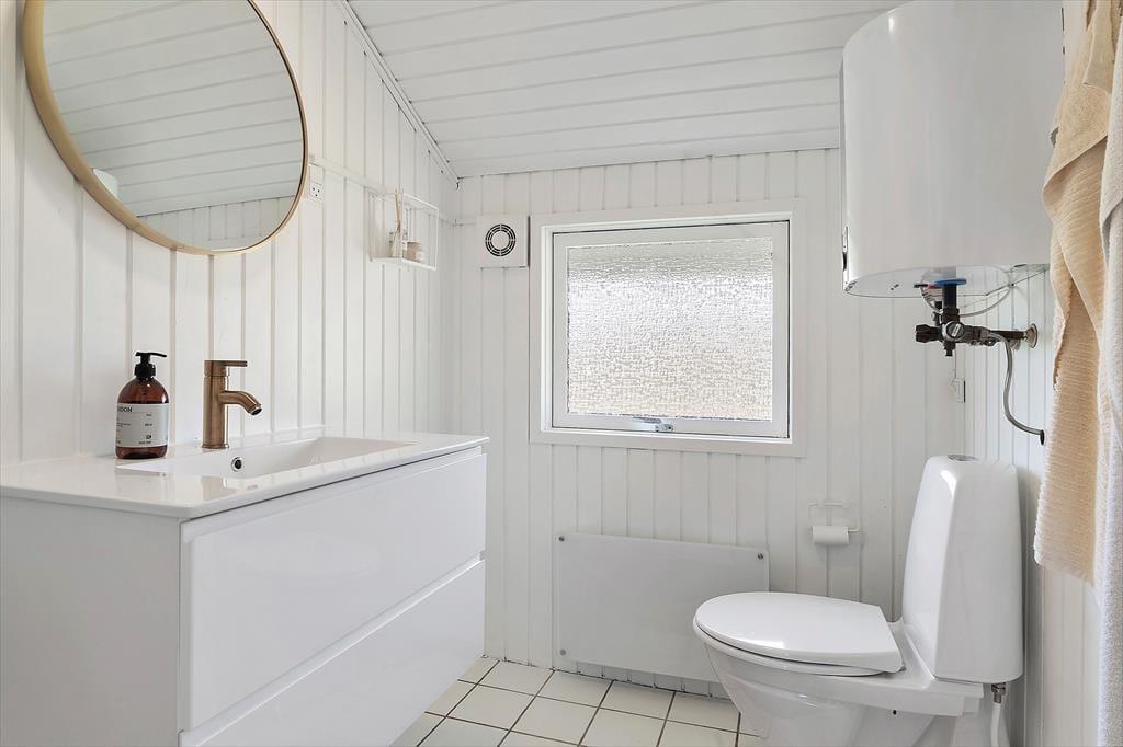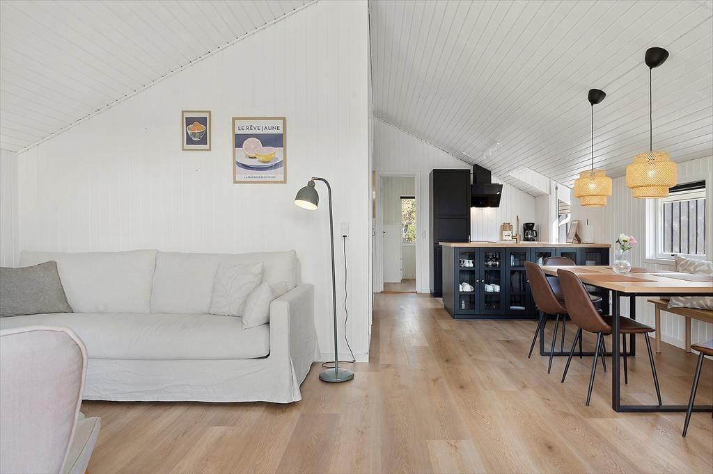 Dette indbydende, klassiske sommerhus byder på ren ferieoplevelse med et charmerende køkken, komfortable værelser, et badeværelse og en indbydende stue. De store vinduer i stuen lader det naturlige lys strømme ind og skaber en lys og luftig atmosfære, der indbyder til ro og afslapning. Her kan du fordybe dig i en god bog med benene oppe og en skøn kop kaffe i hånden. I den hyggelige overdækkede terrasse kan man også nyde sine måltider. Alle rum er designet til at skabe en følelse af hjemlig hygge og ferieafslapning, så du kan sænke skuldrene og lade hverdagens stress forsvinde i det fredfyldte miljø.