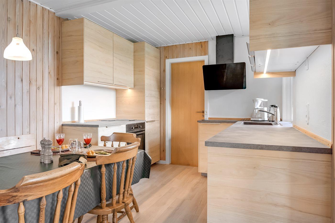 Køkkenet er udstyret med 1 køleskab. Der er 4 induktionskogeplader, varmluftovn, mikrobølgeovn samt opvaskemaskine.