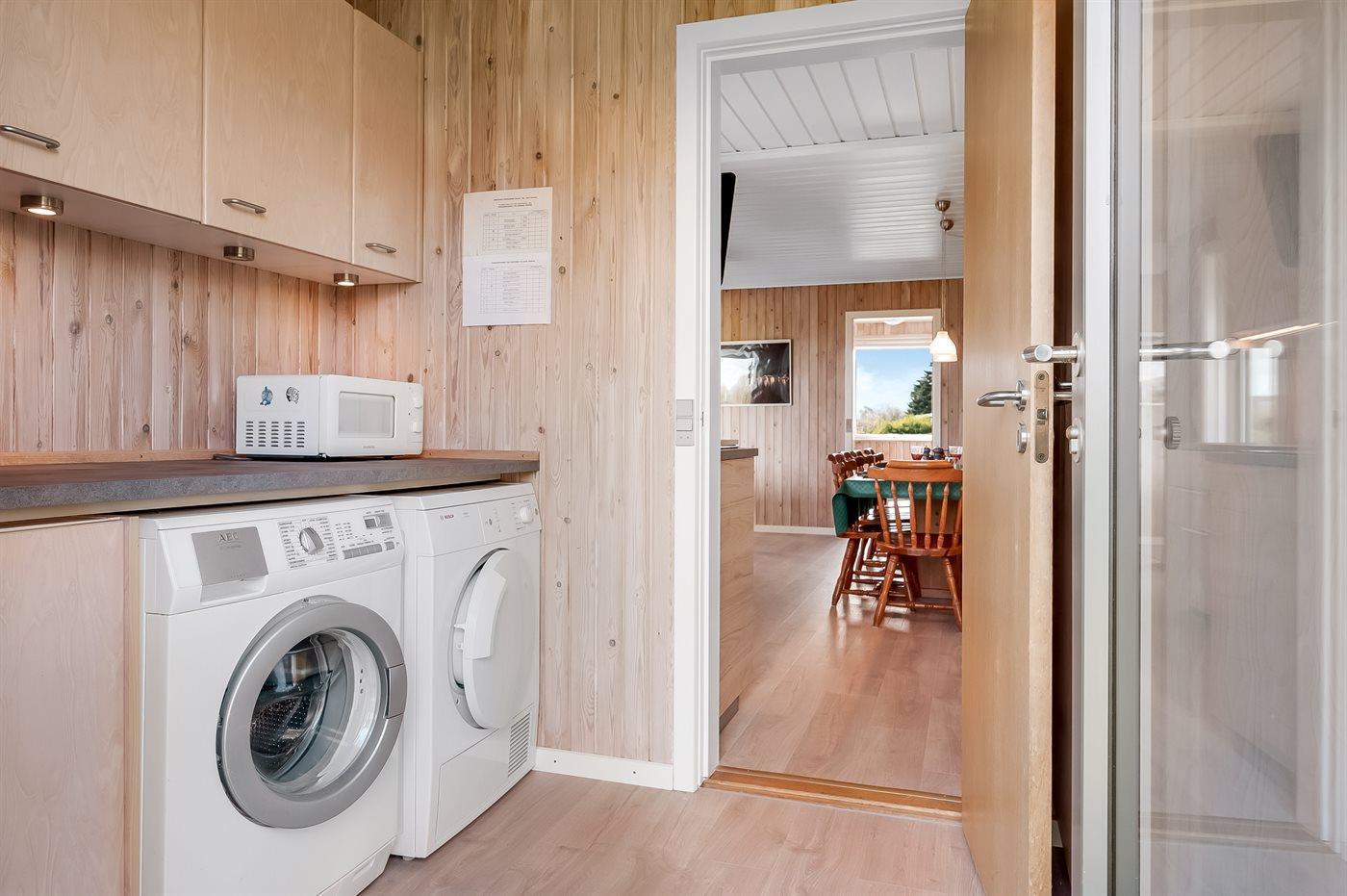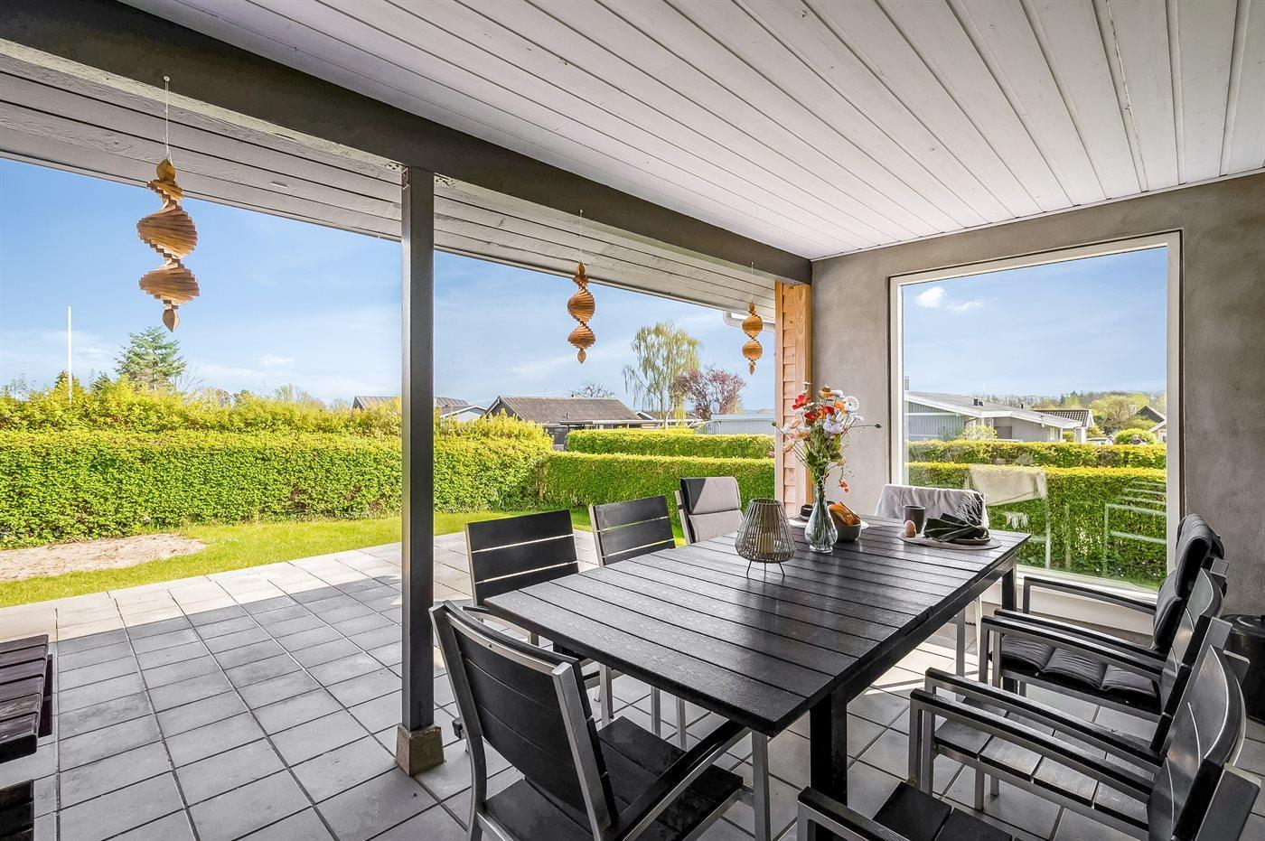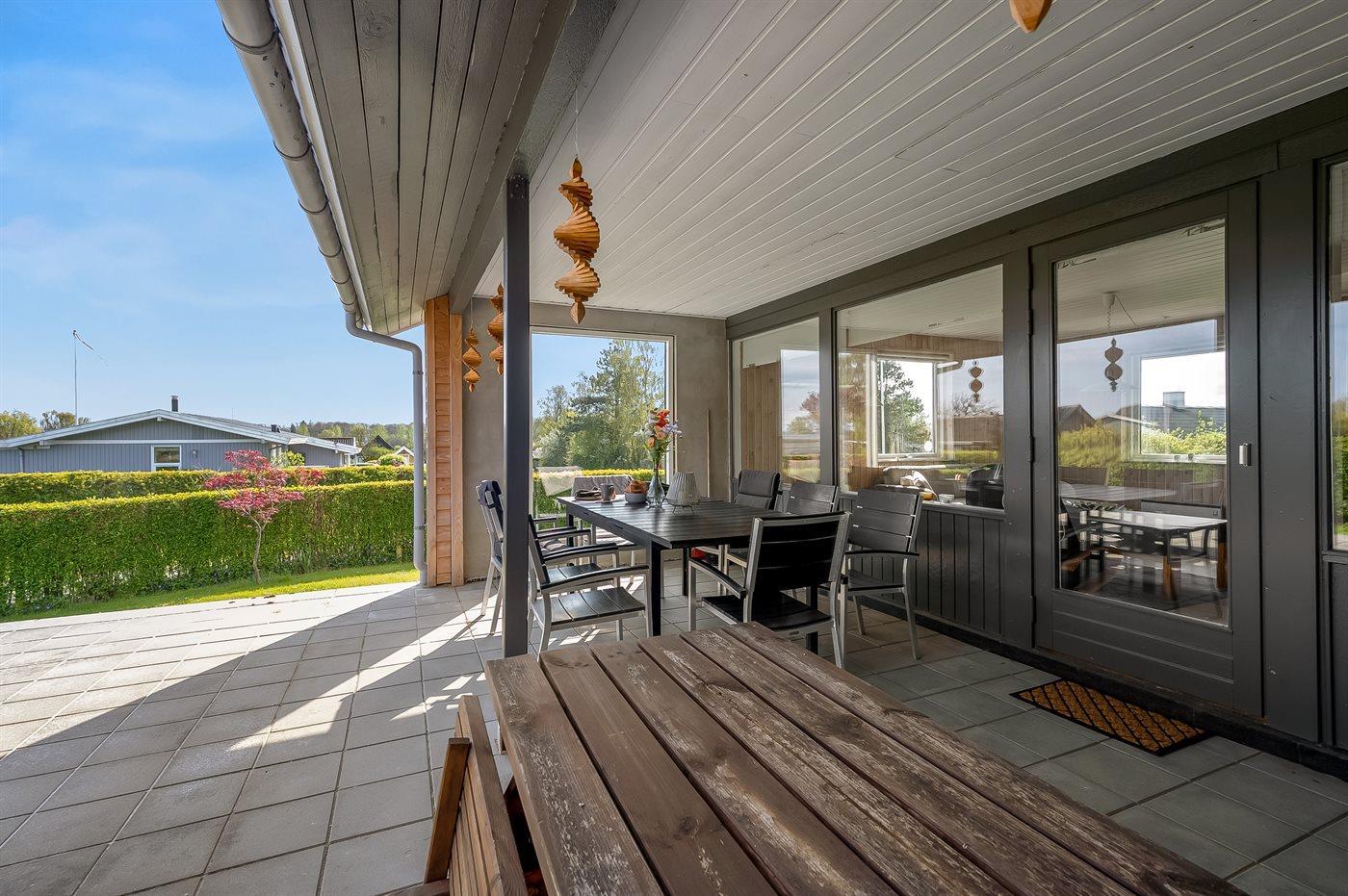 Sommerhuset er beliggende på en dejlig grund og med en overskuelig have. Der findes et dejligt, delvist overdækket terrasseareal - hvor det ofte er muligt at finde et hjørne i læ for vinden, og hvor du kan nyde solen og sidde med et glas vin eller en kop kaffe og slappe af i de fredelige og naturskønne omgivelser.