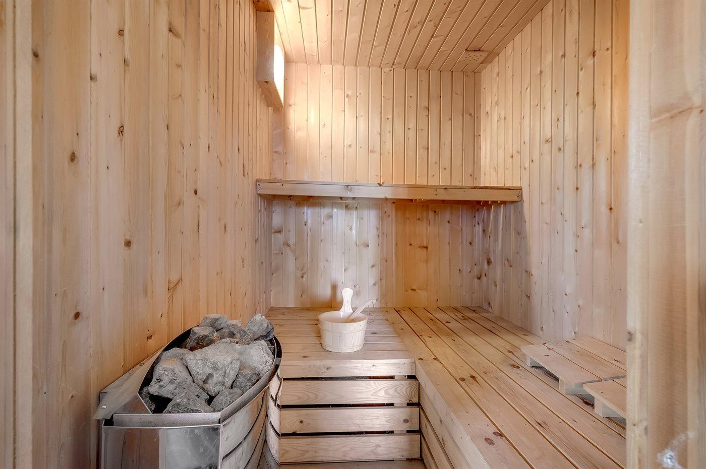 Der er 1 badeværelse med bruseniche og 1 toilet.. Der er gulvvarme på 1 badeværelse. I saunaen er der mulighed for afslapning.