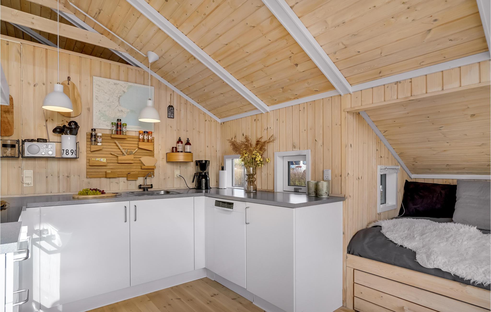 Velkommen til dette hyggelige og lyse feriehus, der med åbent til kip og sine flotte trægulve, vægge- og lofter oser af feriestemning. Selv på kolde dage kommer der meget lys ind gennem de store vinduespartier. Om aftenen kan I flade ud i den bløde sofa og se en god film på fladskærmen.