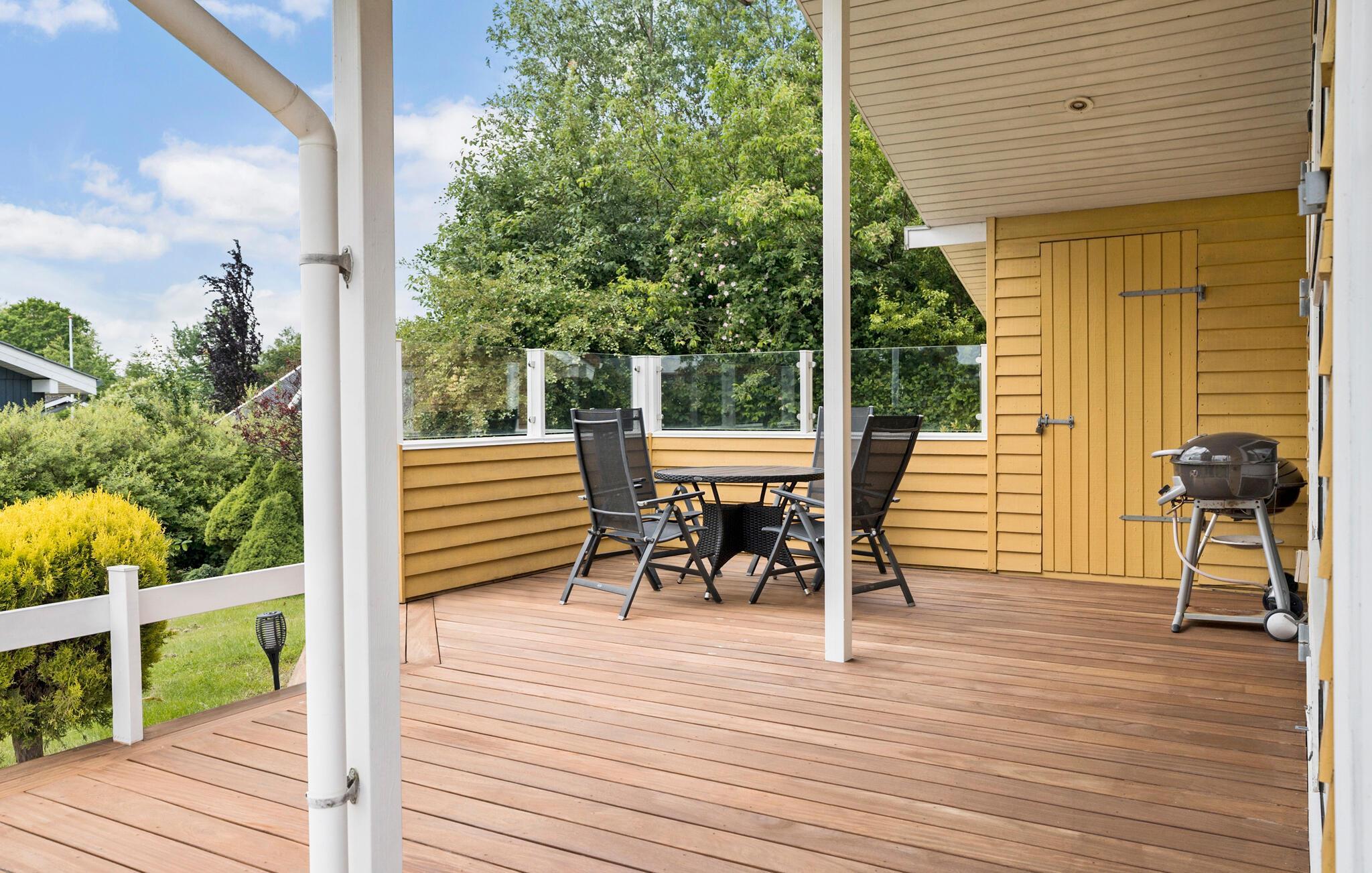 Om sommeren lokker den store og delvist overdækkede terrasse jer udenfor. Start jeres dag her med en lækker morgenmad, og afslut den om aftenen med mad fra grillen. Den smukke have indbyder hele familien til leg på græsplænen eller solbadning.