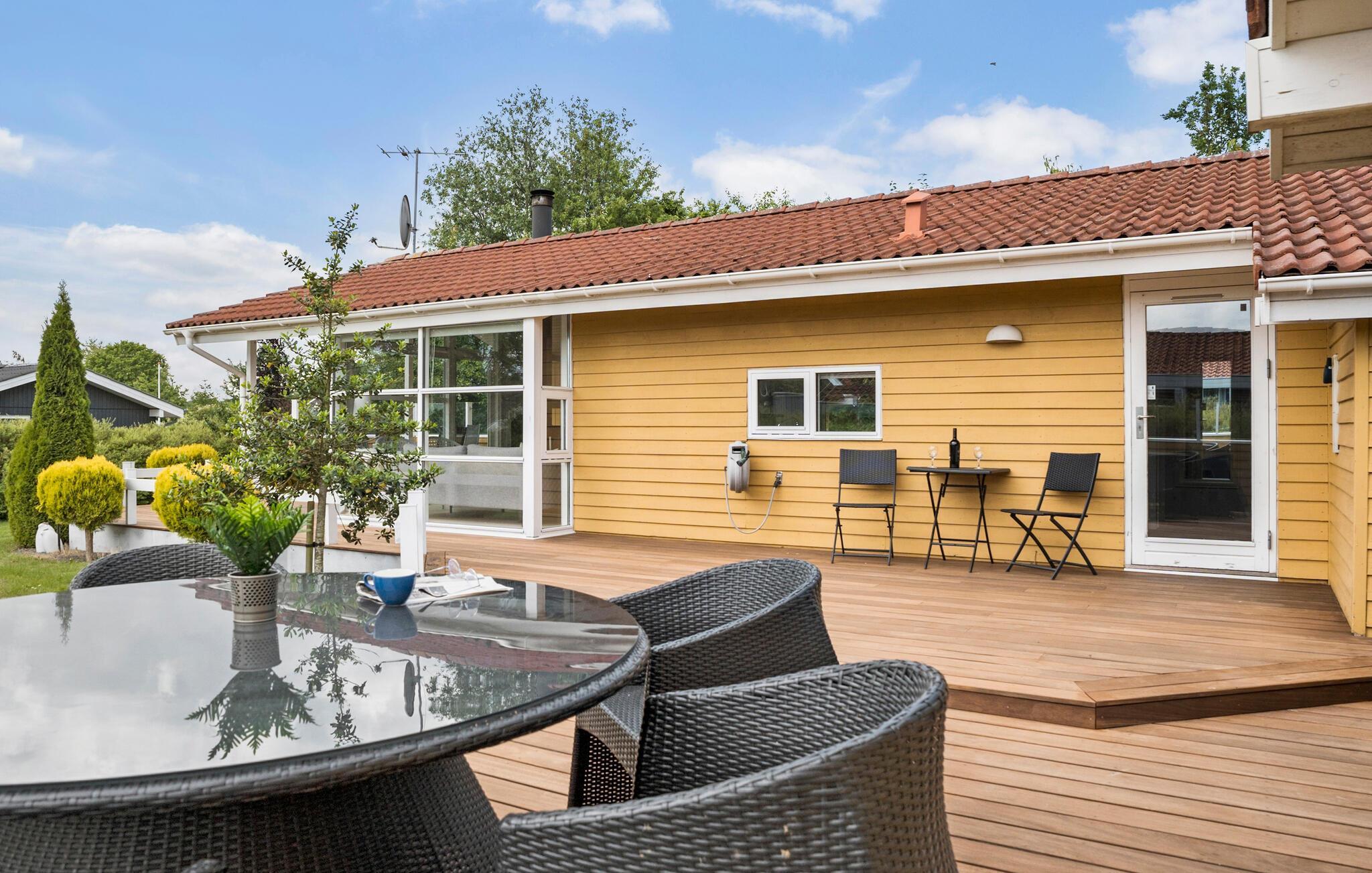 Hyggeligt feriehus i Pøt Strandby med spabad, sauna og stor terrasse tæt på stranden.