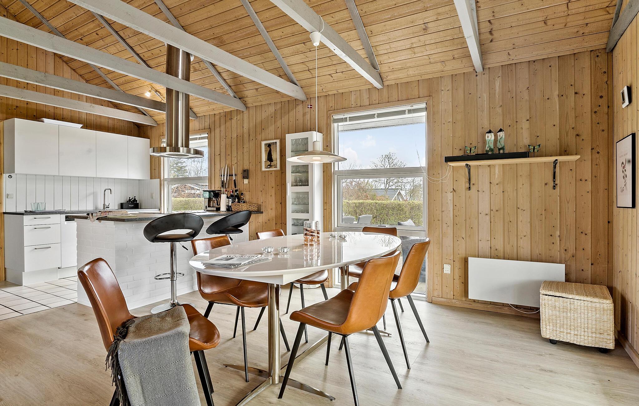 Tag familien under armen og rejs til Pøt Strandby, hvor der en kort gåtur fra stranden venter jer en skøn base i dette indbydende hus. Indretningen fremtræder flot og rustikt med højt til loftet, træpaneler og en brændeovn, der giver varme og det helt rigtige lydtapet til en hyggelig filmaften i sofaen. Nyd godt af udestuen, hvor I uanset vejret kan nyde udsigten til haven, spille brætspil til langt ud på aftenen og runde af med et godt glas vin.