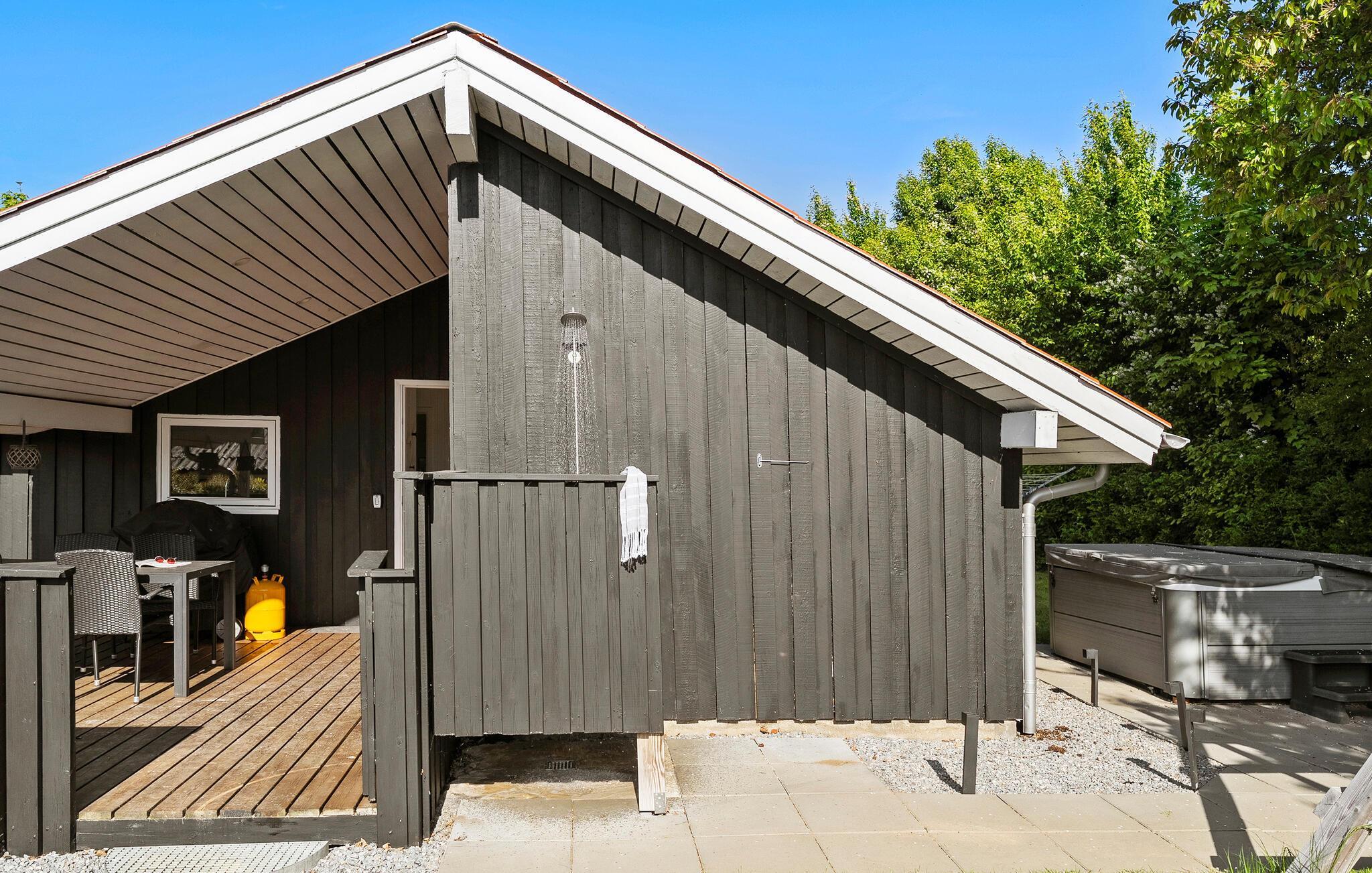Nyd et rummeligt træhus med sauna, spabad og god beliggenhed ved Pøt Strandby i Juelsminde.
