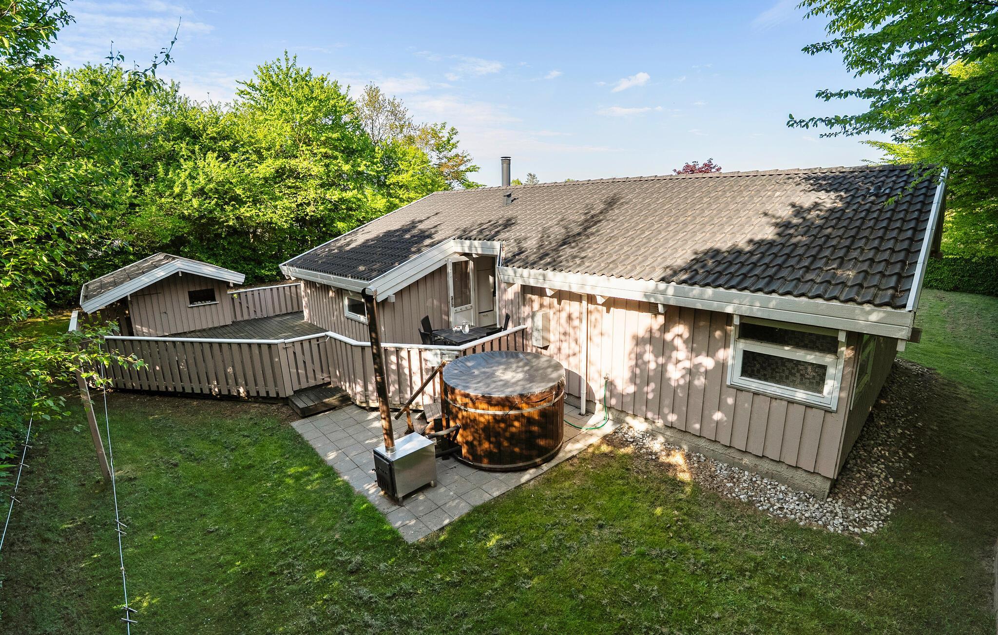 Hyggeligt træhus i Pøt Strandby med sauna, vildmarksbad og smuk udsigt over grønne områder.