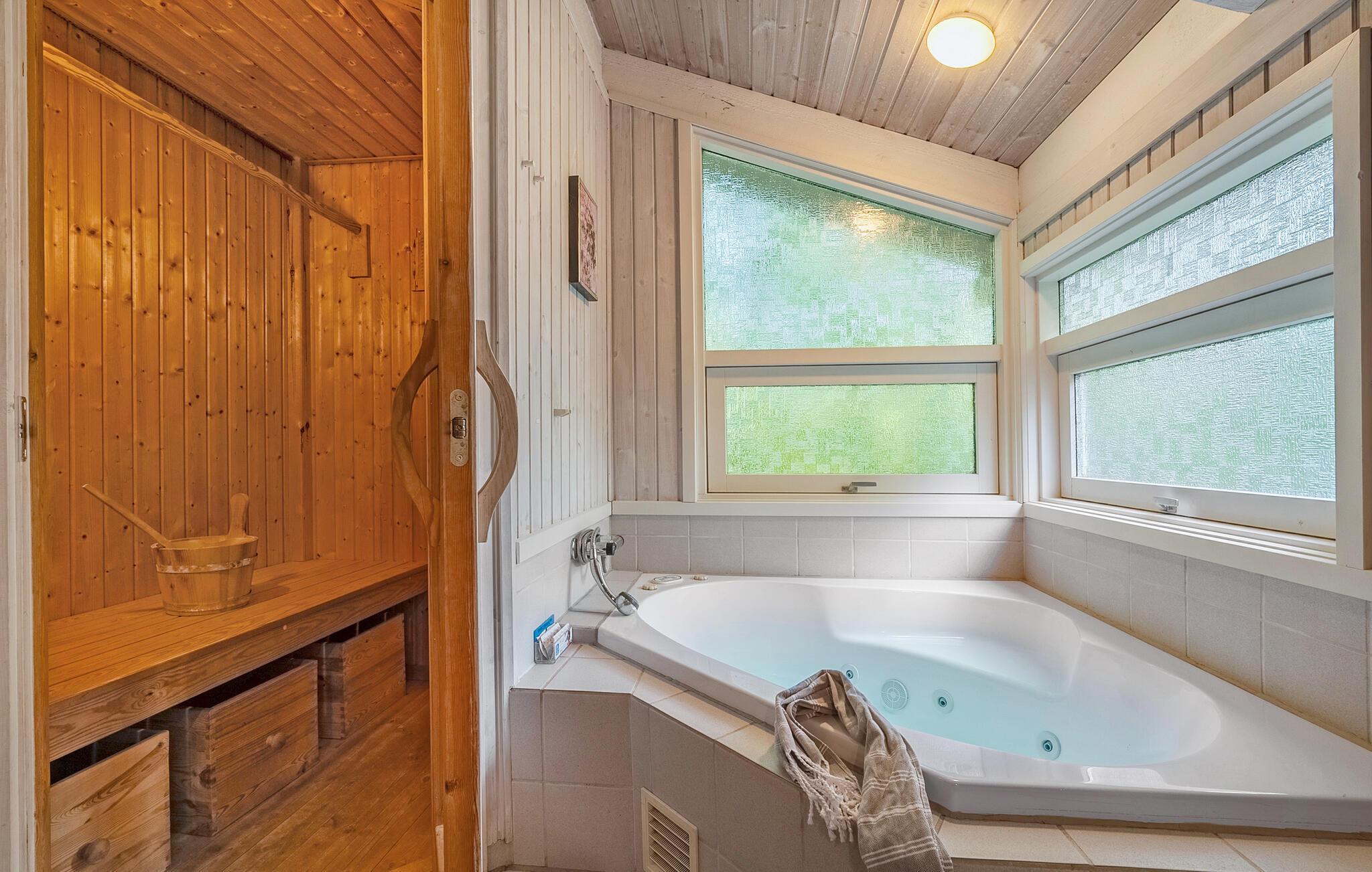 Dette charmerende træhus er det optimale sted til afslappende dage med familie eller venner. Det kombinerer en hyggelig boligatmosfære og afslappende retræter. Det smukt designede opholdsområde er noget særligt med en behagelig atmosfære og store vinduer, der tilbyder en smuk udsigt over de grønne områder. Find jer godt til rette i sofaen, tilbring afslappende aftener ved den knitrende brændeovn eller fordriv tiden med brætspil og film. Det åbne køkken er funktionelt indrettet. Tilbered måltider sammen og nyd dem ved spisebordet med udsigt. Saunaen på stedet tilbyder ekstra afslapning.