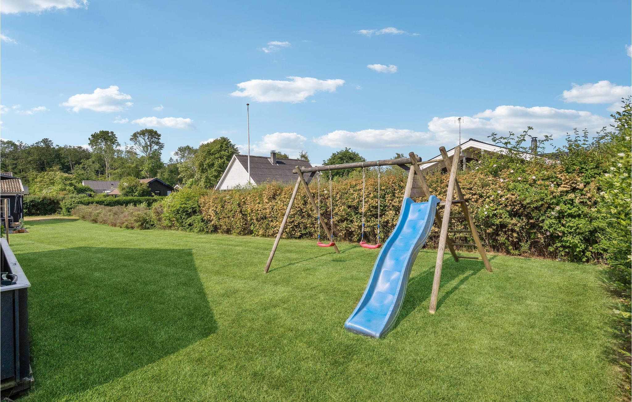 På naturgrunden er der plads til både leg og boldspil; der er også gynge til de mindste.