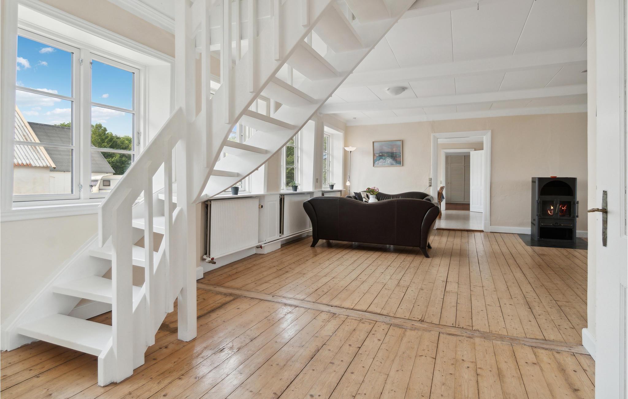 Velkommen til en renoveret og meget rummelig landejendom i to plan med masser af plads. Huset er stilfuldt og personligt indrettet med trægulve og behagelige møbler i stuen. Her er også en brændeovn, hvor familien kan samles og hygge sig om aftenen. Huset har desuden et aktivitetsrum med bordtennis og træningsredskaber. Dejlig stor have og udsigt til marker og landlige omgivelser.