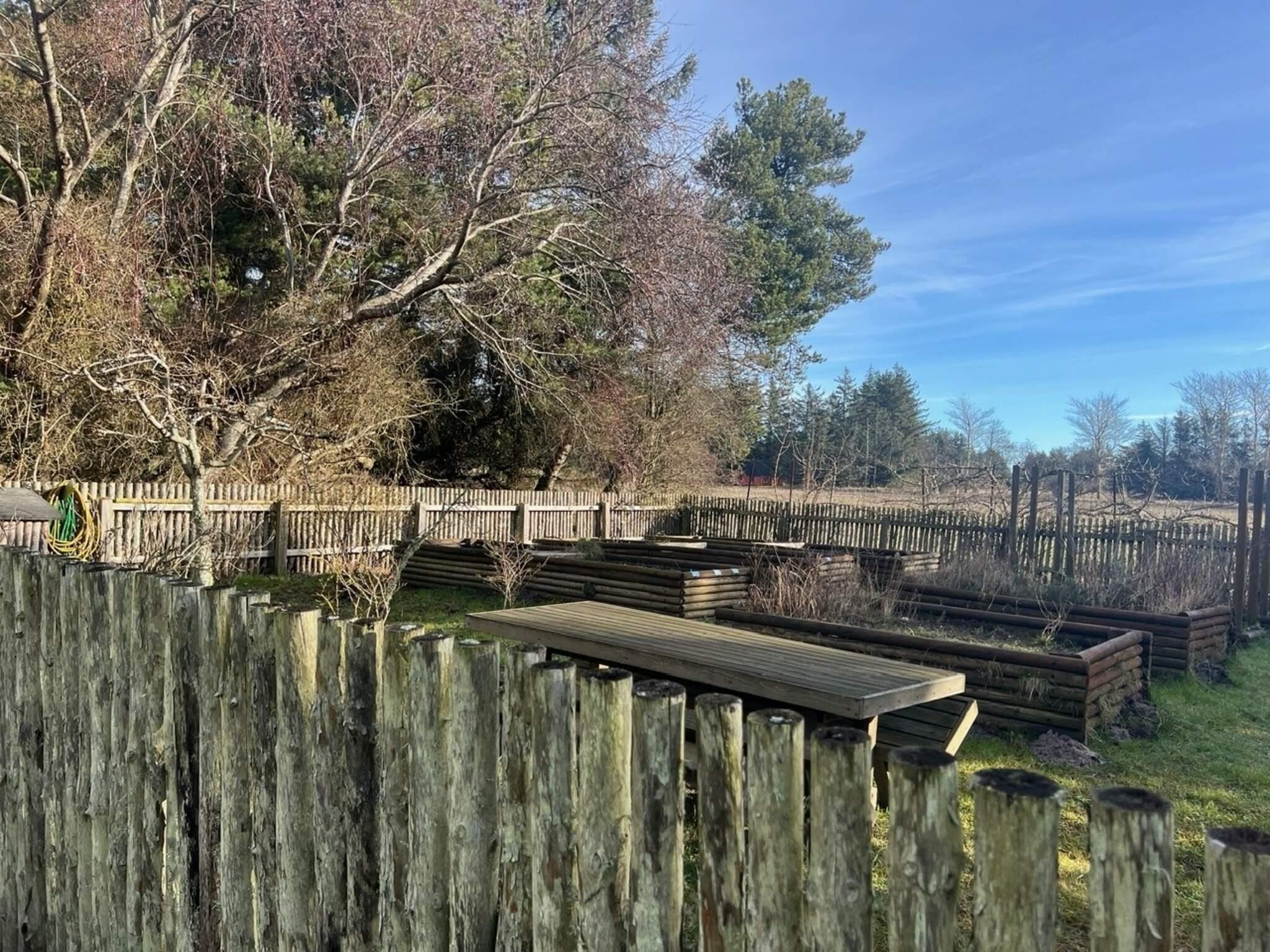 Huset er ideelt for naturelskere og eventyrlystne sjæle, og den store grund giver rig mulighed for familiens firbenede venner til at gå på opdagelse. Omgivelserne er ideelle til at tage din hund med. For børn og små sjæle er haven et sandt paradis med en sjov zipline, en stor trampolin og klatretræer med net, der indbyder til timevis af leg og eventyr i det fri. De store skovområder byder også på muligheder for leg og udforskning, mens terrasserne omkring huset indbyder til afslapning under åben himmel. Haven er prydet med æbletræer og en hyggelig køkkenhave. Ejendommen har også en charmerende åben lade med pejs, perfekt til lange aftener med hyggelige samtaler og lyden af ??havet i baggrunden.