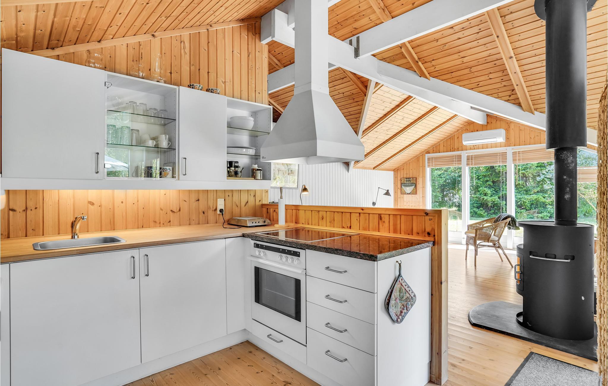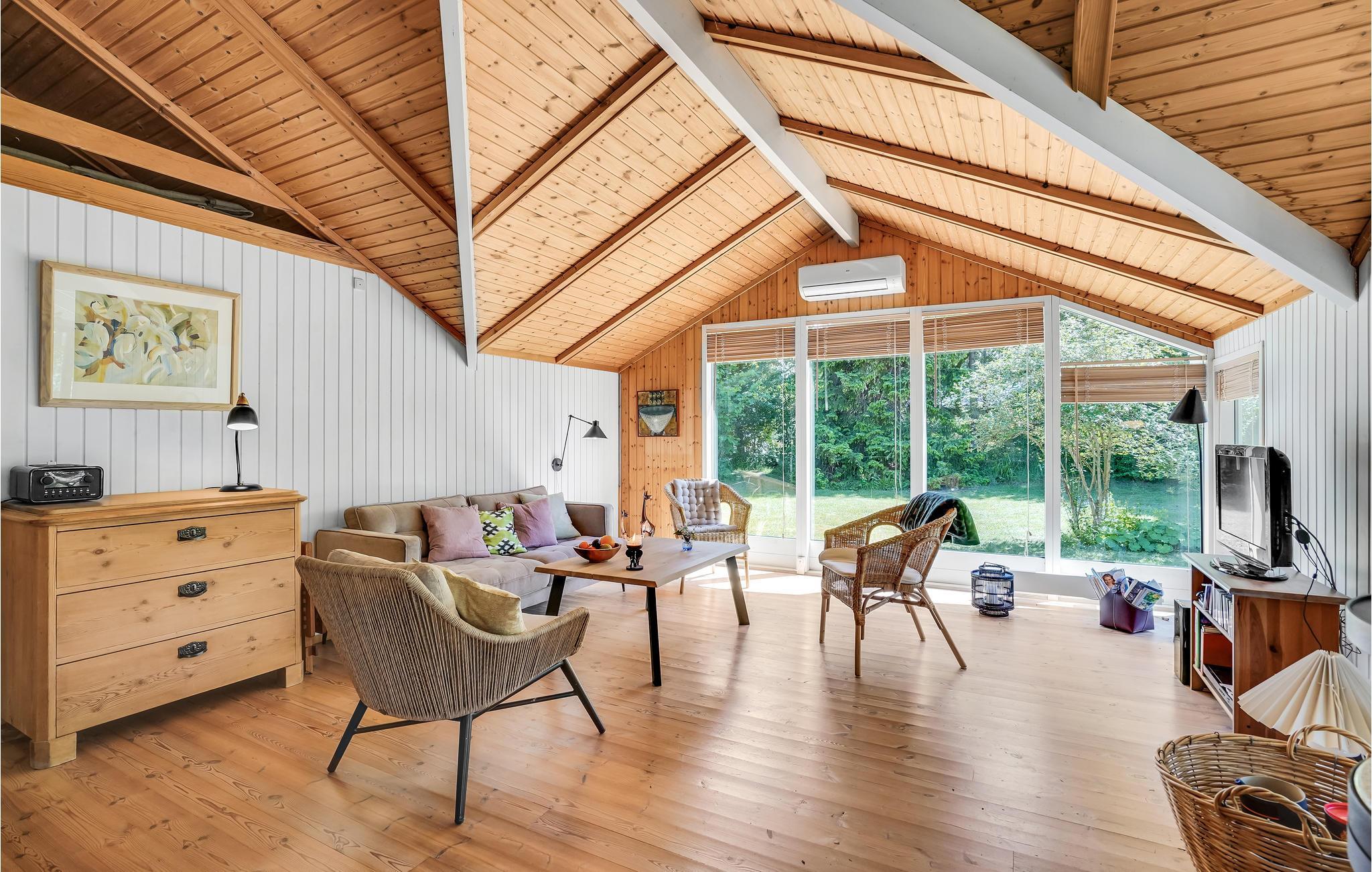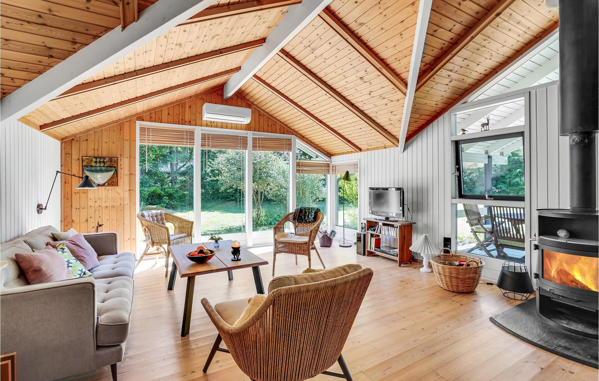 Find jer godt til rette i dette skønne sommerhus i Rågeleje. Her kan I slappe skønt af med familien og tilbringe en dejlig ferie i naturskønne omgivelser. Huset har en flot arkitektur og byder på masser af plads. Det naturlige samlingspunkt bliver den rummelige stue, som har en hyggelig atmosfære, hvilket forstærkes ekstra af brændeovnens varme på en kølig aften. Børnene vil elske hemsen og den store have. Find jer godt til rette på terrassen og nyd solens stråler med en lækker drink efter en lang dag på farten.
