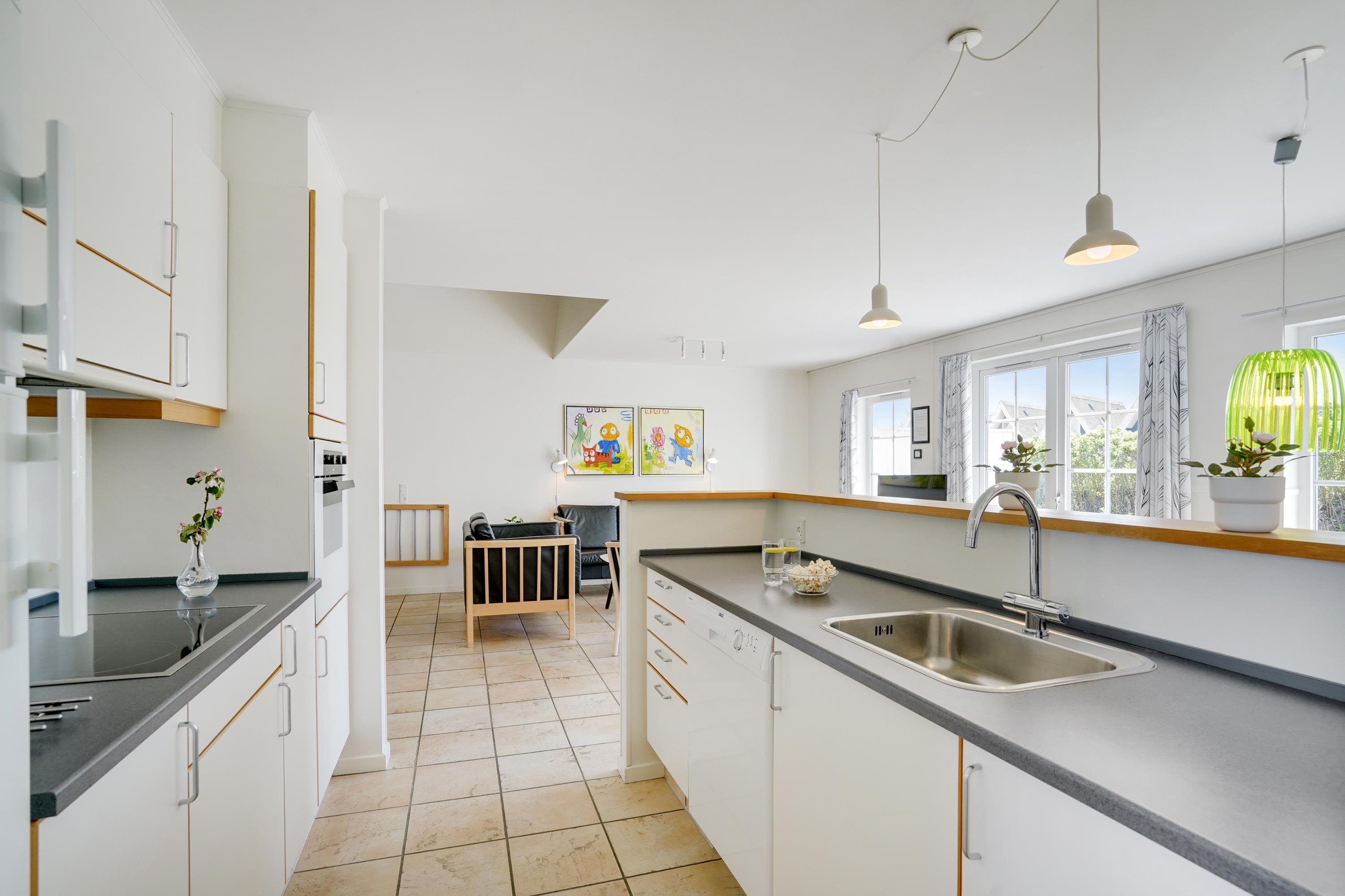 Stue & Køkken: Køleskab-/fryseskab, kaffemaskine, elkedel, glaskeramisk komfur, ovn, mikroovn og opvaskemaskine