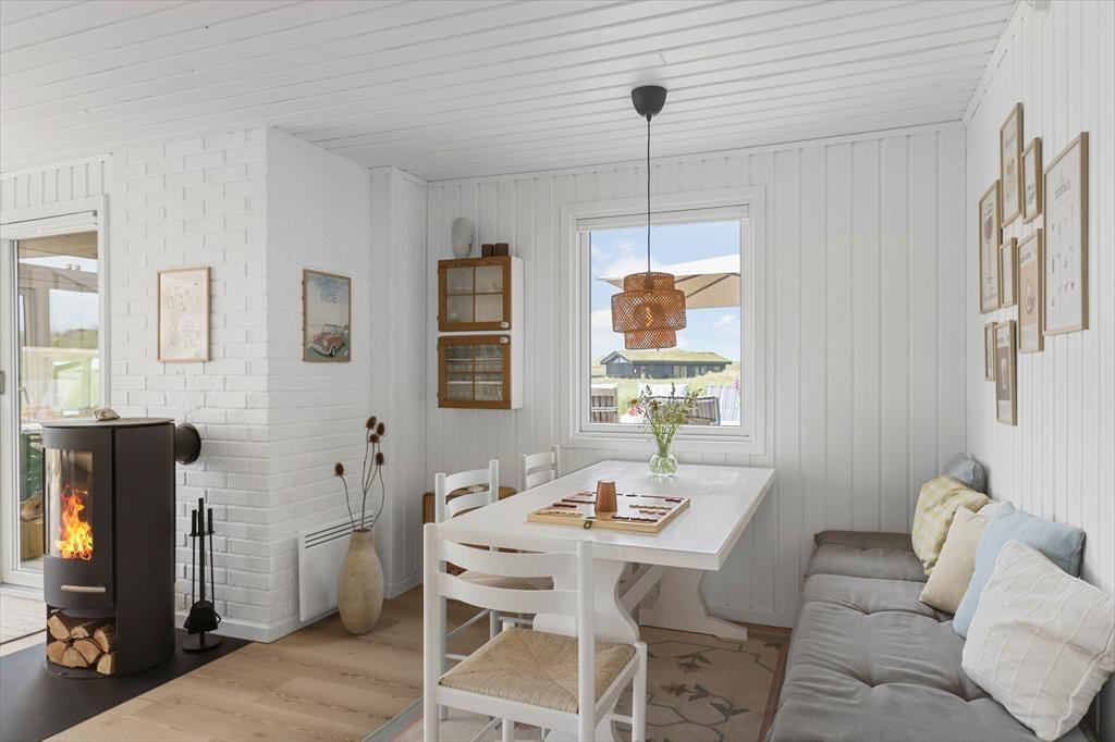 Indenfor mødes I af en indbydende og hyggelig atmosfære, som gør det nemt at føle sig hjemme. Stuen er både rummelig og hyggelig, og her er der plads til at samle hele familien. Den hyggelige brændeovn skaber en varm og indbydende stemning, som er perfekt til de kolde aftener. I det åbne køkken kan I nemt samles om madlavningen, og fra stuen har I direkte adgang til terrassen, hvor I kan nyde måltider eller bare slappe af i solen. Huset har en behagelig indretning, der får feriestemningen til at blomstre.