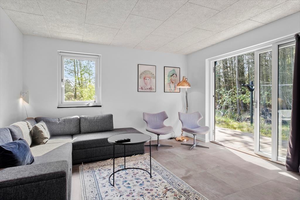 Det moderne design og den gennemtænkte planløsning sætter rammen om ferielivet i dette dejlige sommerhus. Huset byder på lyse opholdsrum med store vinduespartier, der lukker naturens lys og farver helt ind. Det åbne køkken-alrum er husets hjerte, hvor du kan samles med familien omkring madlavning og hyggelige middage. Den rummelige stue indbyder til afslapning med en god bog eller en film, mens brændeovnens varme spreder hygge. Med tre soveværelser og to badeværelser er der god plads til hele familien, og et praktisk bryggers gør det nemt at holde styr på hverdagslogistikken.