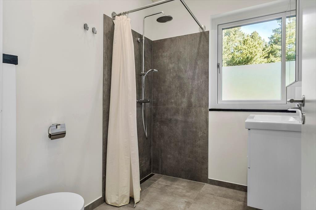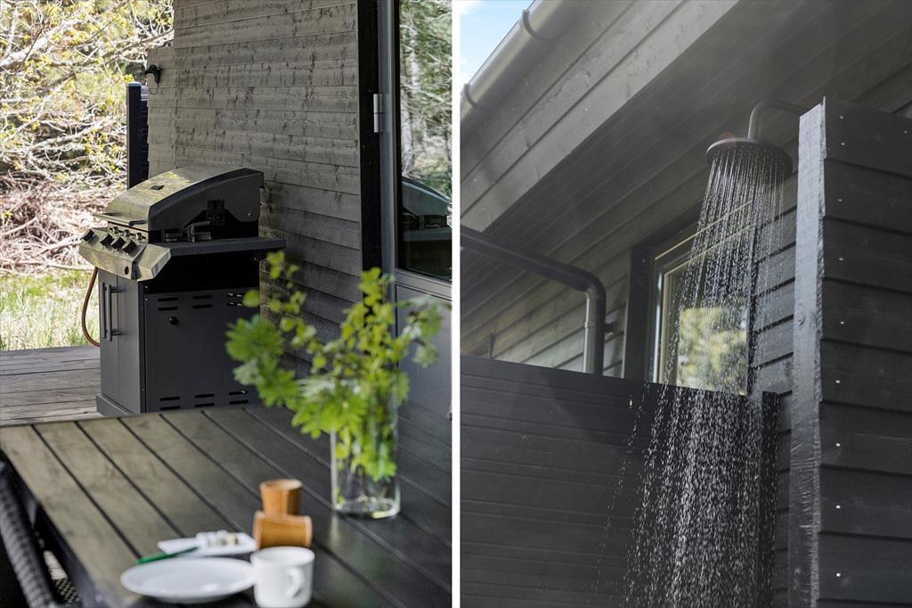 Sommerhuset har flere terrasser, som gør det nemt at nyde livet udenfor, uanset om du vil dase i solen eller finde skygge under et overdækket areal. Terrasserne ligger omkranset af træer, så du får en fornemmelse af at være midt i naturen. Her kan du tænde op i grillen og nyde lange aftener under åben himmel, mens fuglene synger i baggrunden. Grunden er stor og privat, og der er masser af plads til, at børnene kan lege og boltre sig, mens de voksne slapper af.