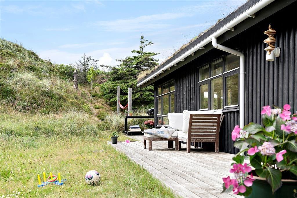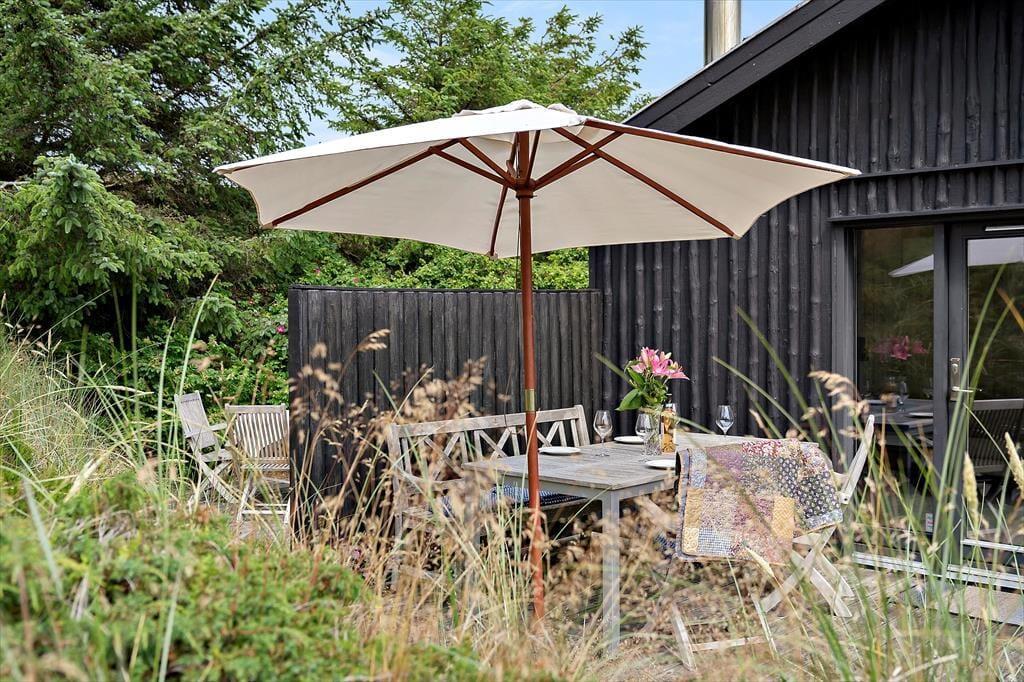 Nærheden til naturen forstærkes selvfølgelig yderligere, når I rykker driverlivet ud i det fri på den store klitgrund. Den åbne træterrasse breder sig rundt om huset, så I kan sætte jer lige der, hvor solforholdene er bedst – eller I kan selvfølgelig også gå efter en skyggefuld opholdsplads under parasollen, når den danske sommer er på sit højeste. Efter en dukkert i Vesterhavet kan I skylle jer under udebruseren, og sidst på dagen kan I tænde op i grillen og gøre klar til et festmåltid i de naturskønne og helt fredfyldte rammer.